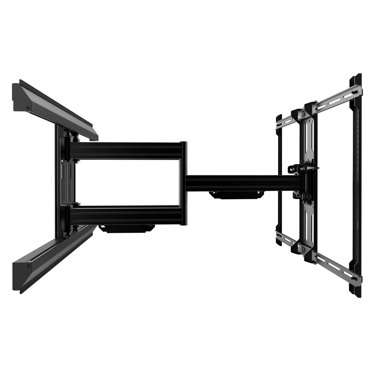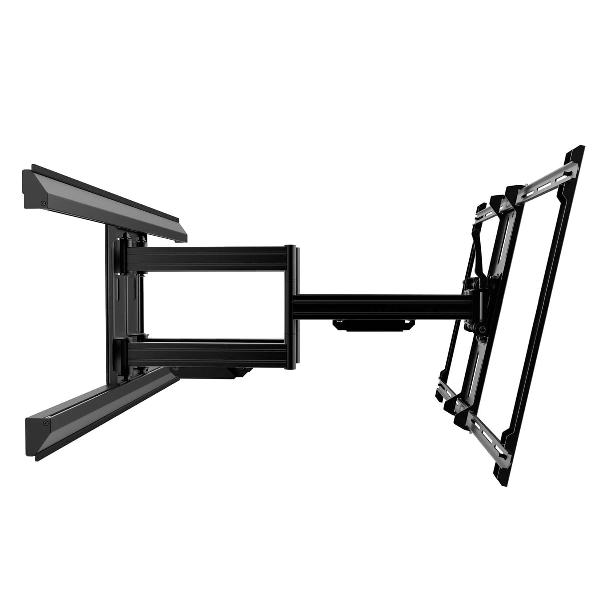 Don’t let the size of your TV dictate where you put it. Capable of supporting TVs up to 100” the PMX700 features two articulating arms that can be horizontally offset to give you the utmost discretion over where your TV is placed. With 31.3” of extension this full motion wall mount provides enough tilt and swivel movement to ensure you always have the perfect viewing angle. Its low profile design allows your TV to sit 2.6” from the wall when fully retracted and features cable management clips to keep your cables out of sight.