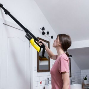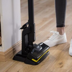Karcher’s VC 4i delivers impressive, consistent suction power thanks to its battery technology and bagless cyclonic design. Equipped with a washable HEPA12 filter that captures up to 99.5% of dust and micro particles, it picks up a wide range of allergens. The VC 4i easily switches from a stick vac to a hand vac by removing the extension wand. Its cordless operation runs up to 60 minutes (depending on usage) and even powers a motorized floor brush. The cleaner head is low profile, 3″ high with the ability to swivel 180°. You can easily vacuum under beds and around furniture. Weighing in at only 2.2 pounds in hand vac mode, or 4 pounds in stick vac mode, the VC 4i is easy to hold and maneuver. It ships with a floor nozzle (with powered brush), an upholstery nozzle and a crevice nozzle. For maximum operating time, activate the onboard Eco-Function. If you’ve been looking for the perfect light weight, cordless vacuum that can operate as both a hand vac and stick vac and minimize allergens in your home. To vacuum delicate surfaced the powered brush roll can be turned off. Easy to use without fatigue, control power with the push of a button.