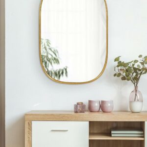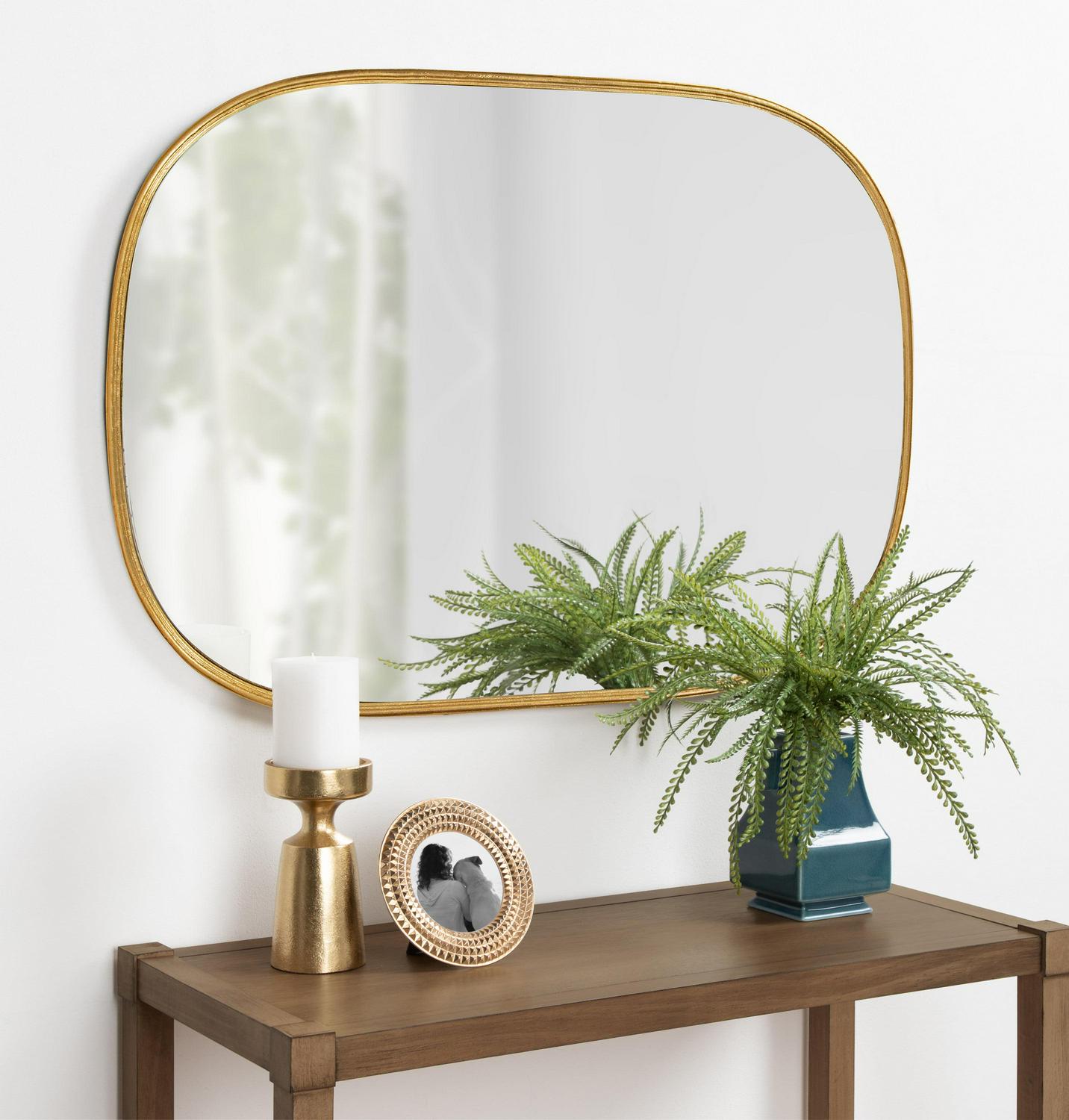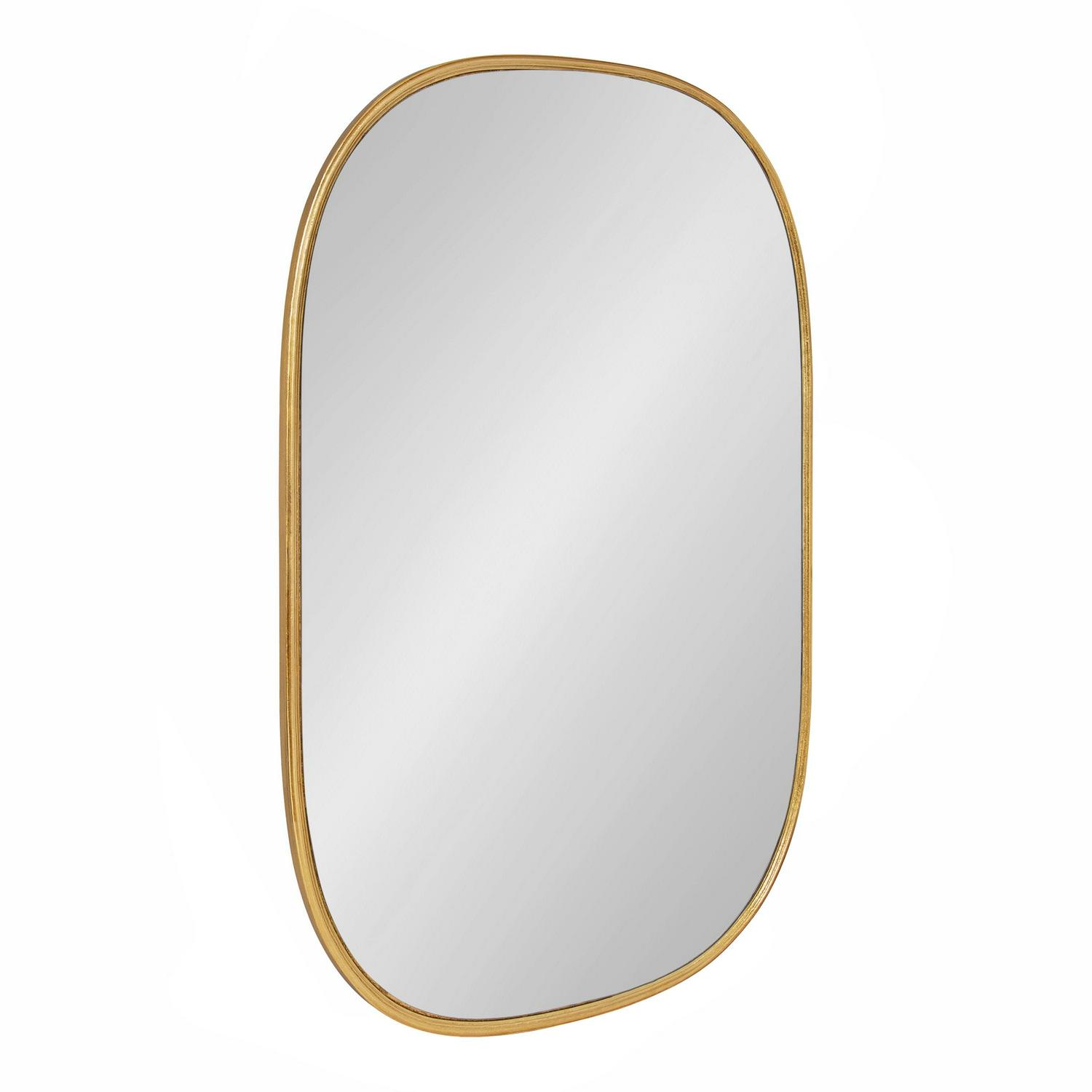 Kate and Laurel Caskill Decorative Mid-Century Modern Rounded Edged Rectangular Frame Wall Mirror in Gold Leaf, 24×35.5 Inches