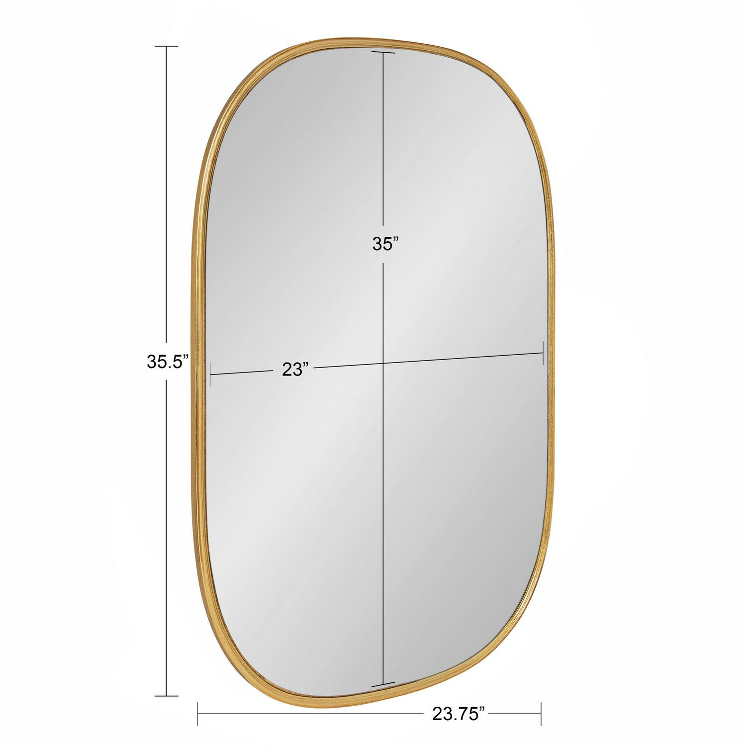 – The framed dimensions of the Kate and Laurel Caskill Wall Mirror are 23.6 x 35.4 inches. The gold leaf finish and curved frame creates a beautiful look