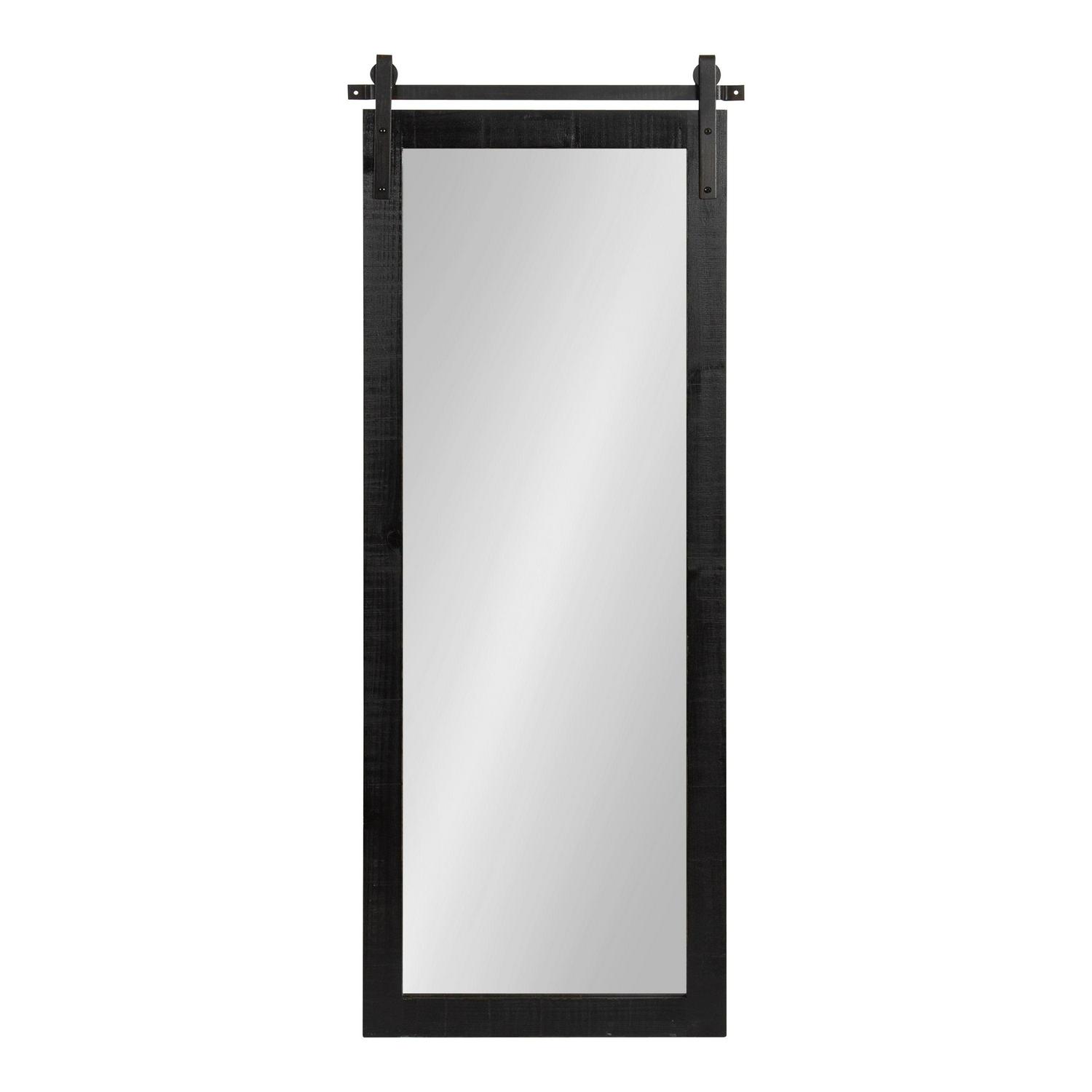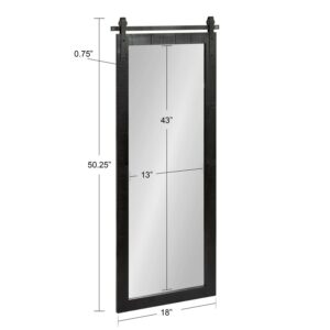Kate and Laurel Cates Farmhouse Wood Framed Panel Wall Mirror, 18 x 50, Black, Decorative Rustic Barn Door Inspired Wall Mirror Decor With Full Length Size