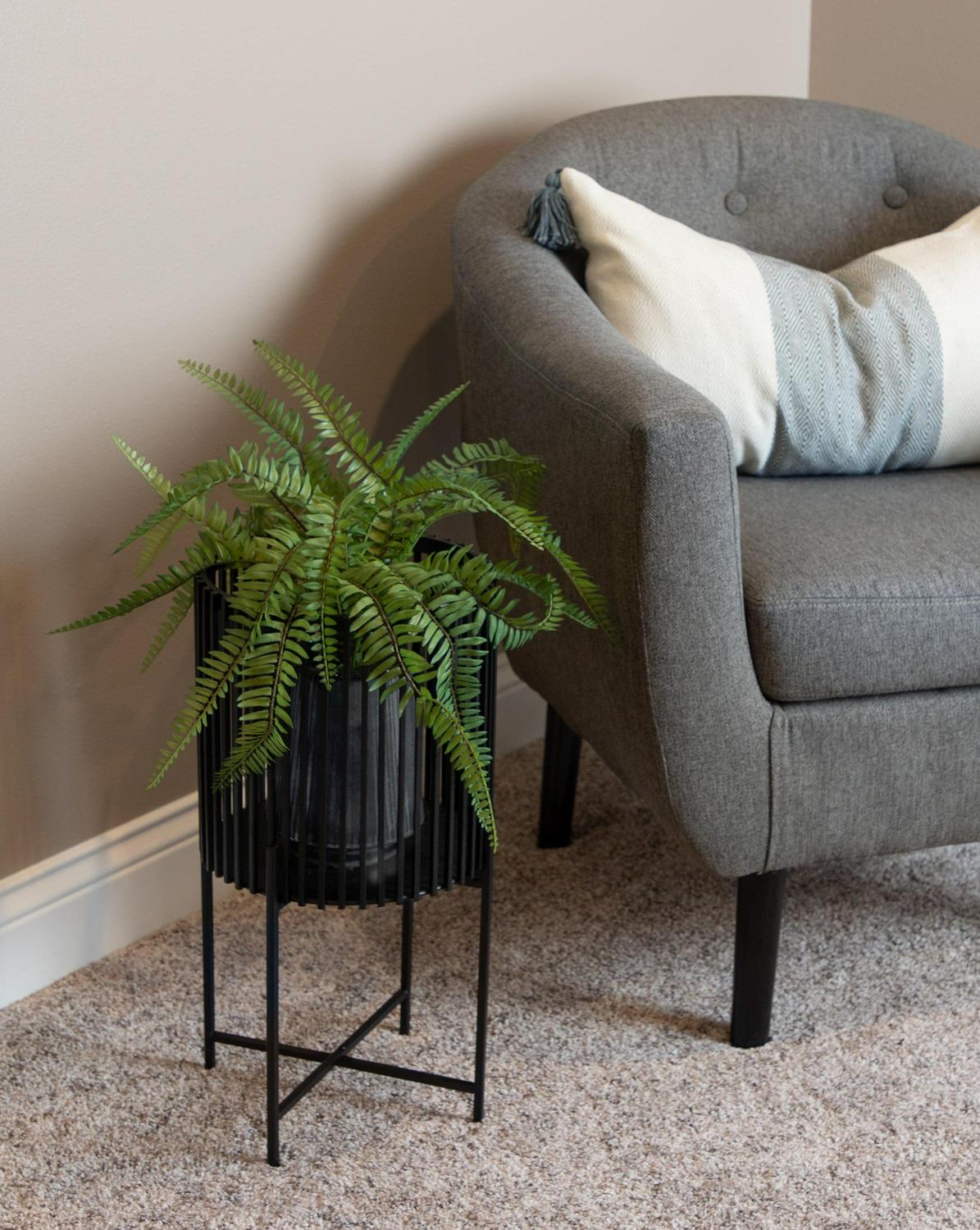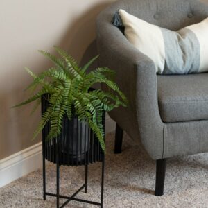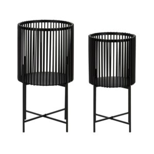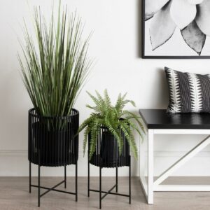 The sleek metal rods of the Paynter Planters create interesting visual texture and openness, a look we don’t often see in a large floor planter set. The metal material is lightweight but sturdy and the stands (also made of metal) not only add to the overall appeal but also make them very practical. The large pot has an 11-inch diameter opening and is 11.75-inches deep while the smaller pot has a 9-inch diameter opening and is 9.75-inches deep creating plenty of room for a variety of houseplants to sit