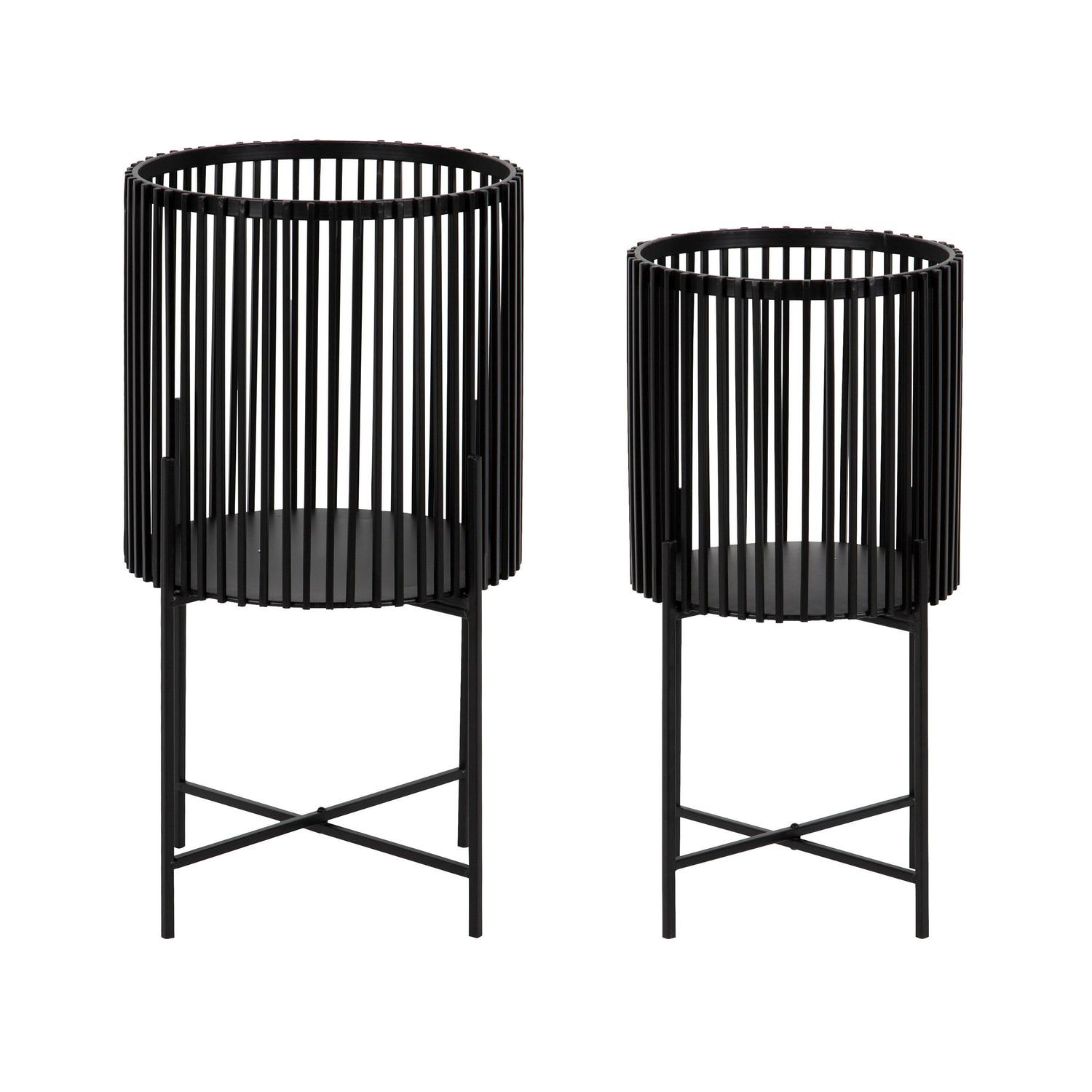 Kate and Laurel Paynter Modern 2-Piece Metal Floor Planter Set with Foldable Stand, Black