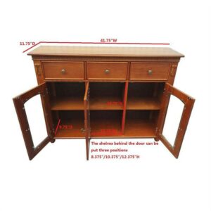 – Three glass doors have two shelves inside each, great for books or decorative items