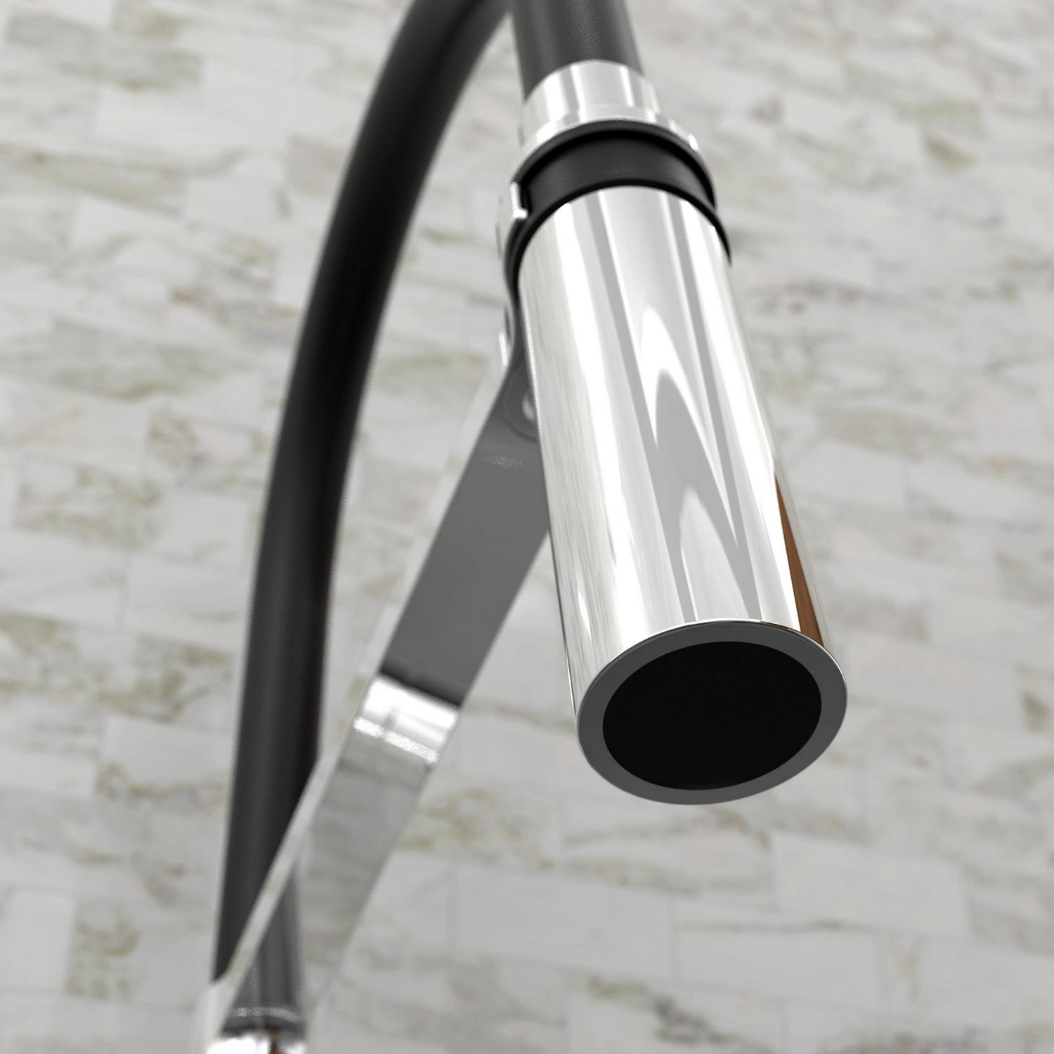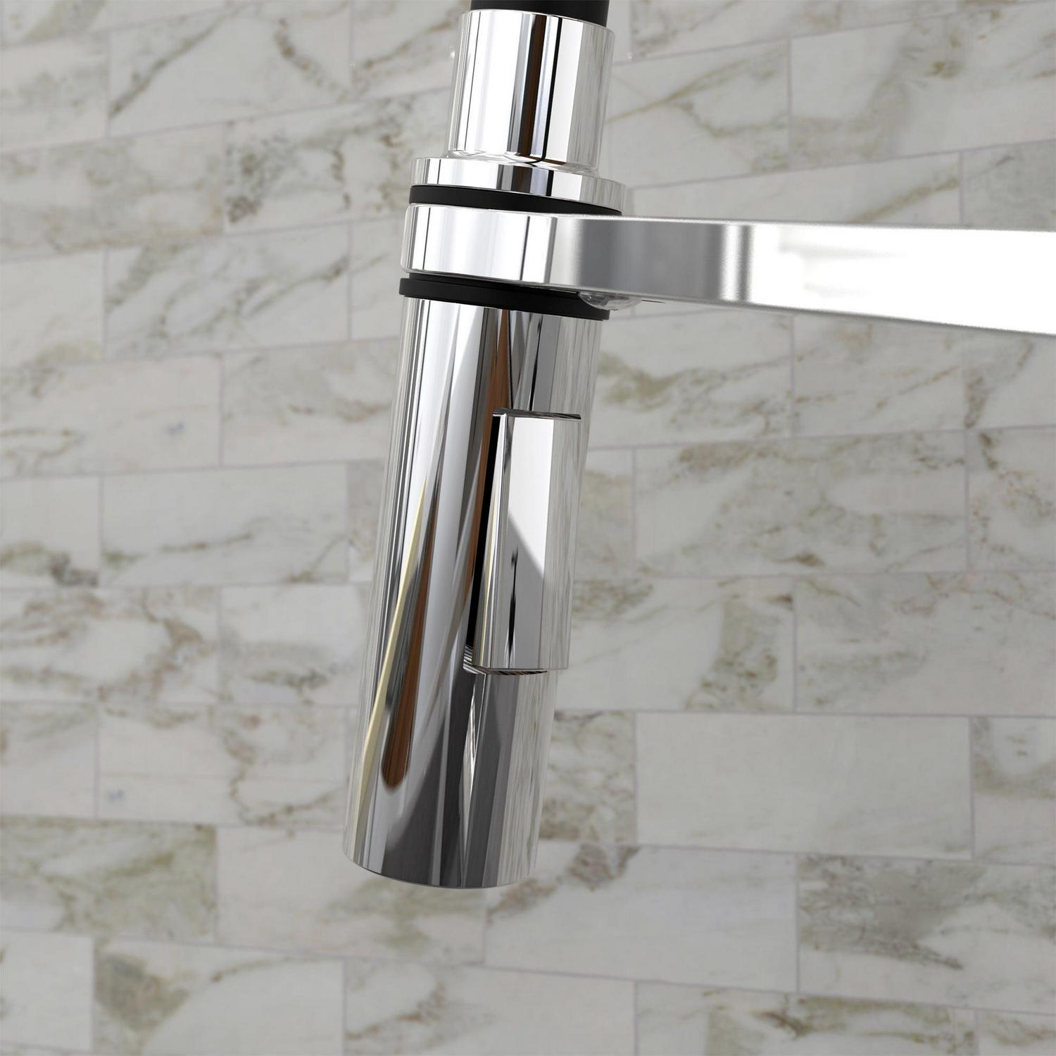 - Swivel pull-down spout with push-button diverter for 2 functions: stream and spray jets