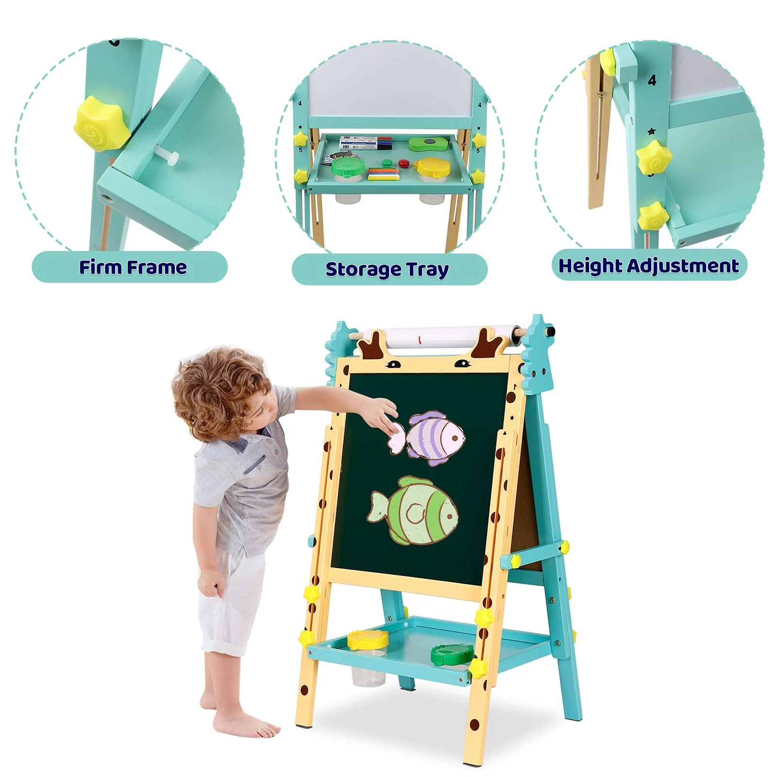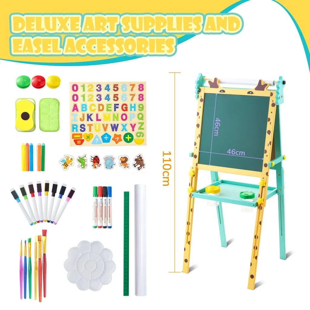 Keenstone Deer Art Easel for Kids Easel Set with 100+ Painting Gifts,Chalkboard Dual Magnetic Whiteboard,Painting Stand with Paper for Ages 3 and up Kids Children Toddler