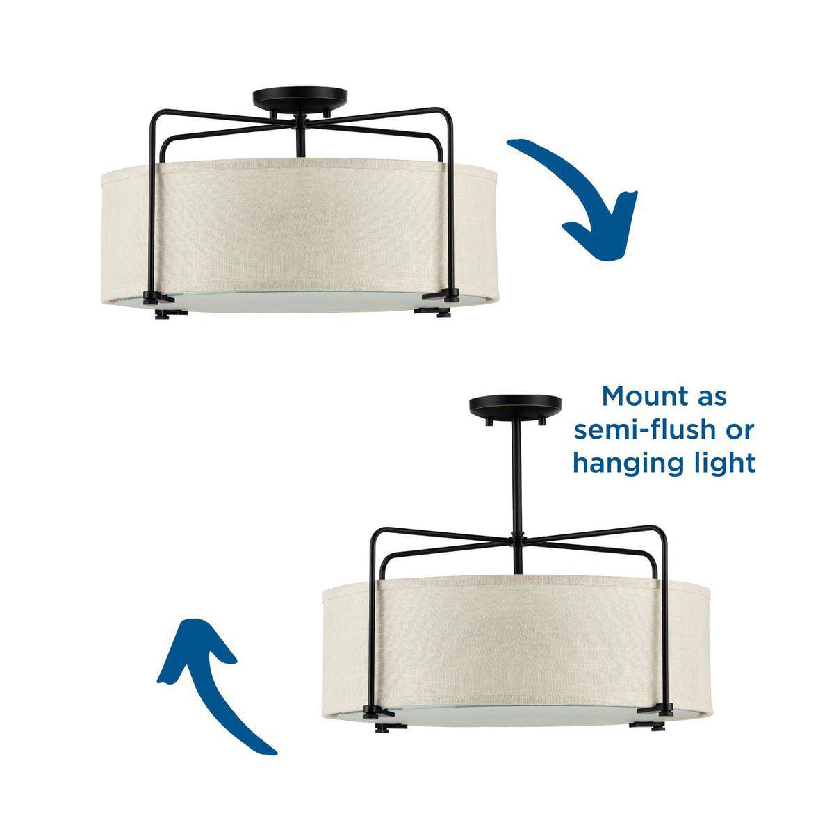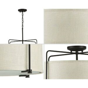 Freshen up your farmhouse décor with a semi-flush mount convertible light from the Kempsey Collection. Textured harvest linen shade creates a beautiful muted glow. Exposed antique bronze arms make a statement ceiling light. Compatible with dimmable bulbs (non-included). This semi-flush convertible light can be installed as a flush mount or as a pendant with the included stem and chain.