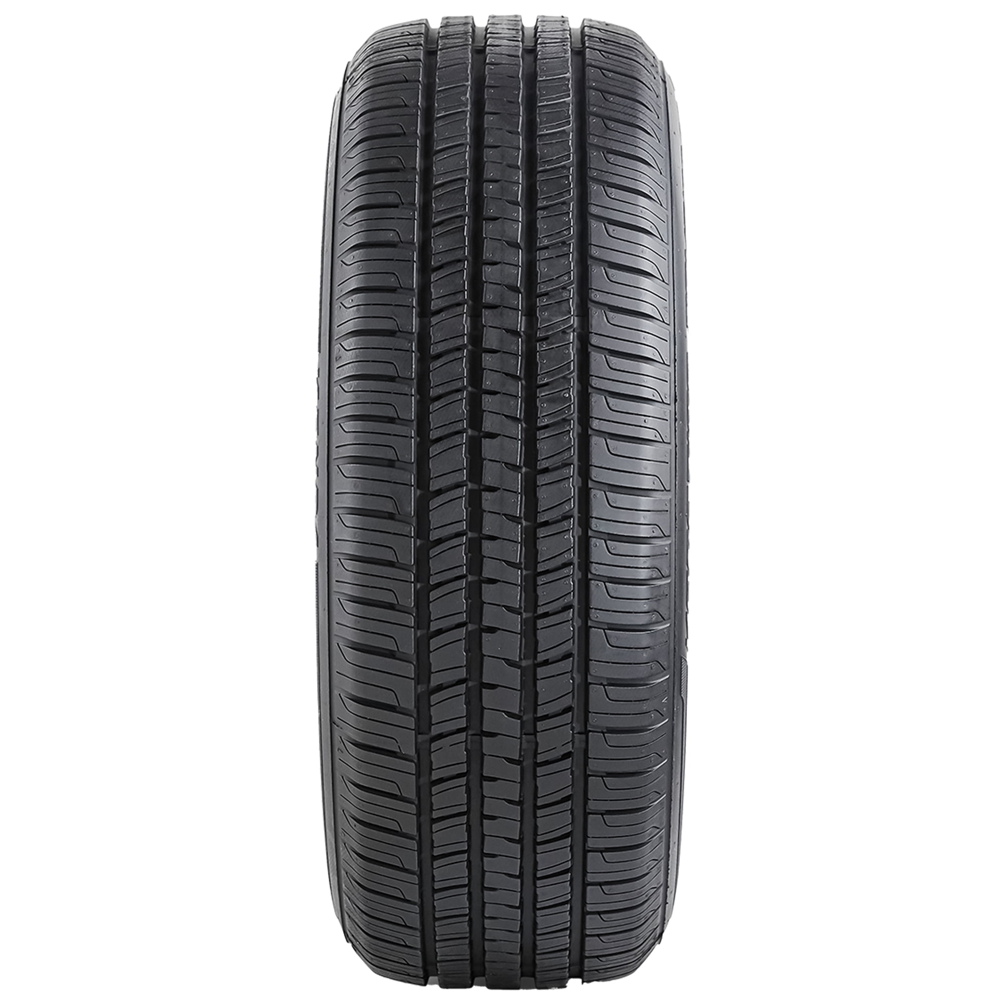 - Symmetric tread pattern and computer optimized design reduce road noises and uneven wear for a quiet ride and longer tread life