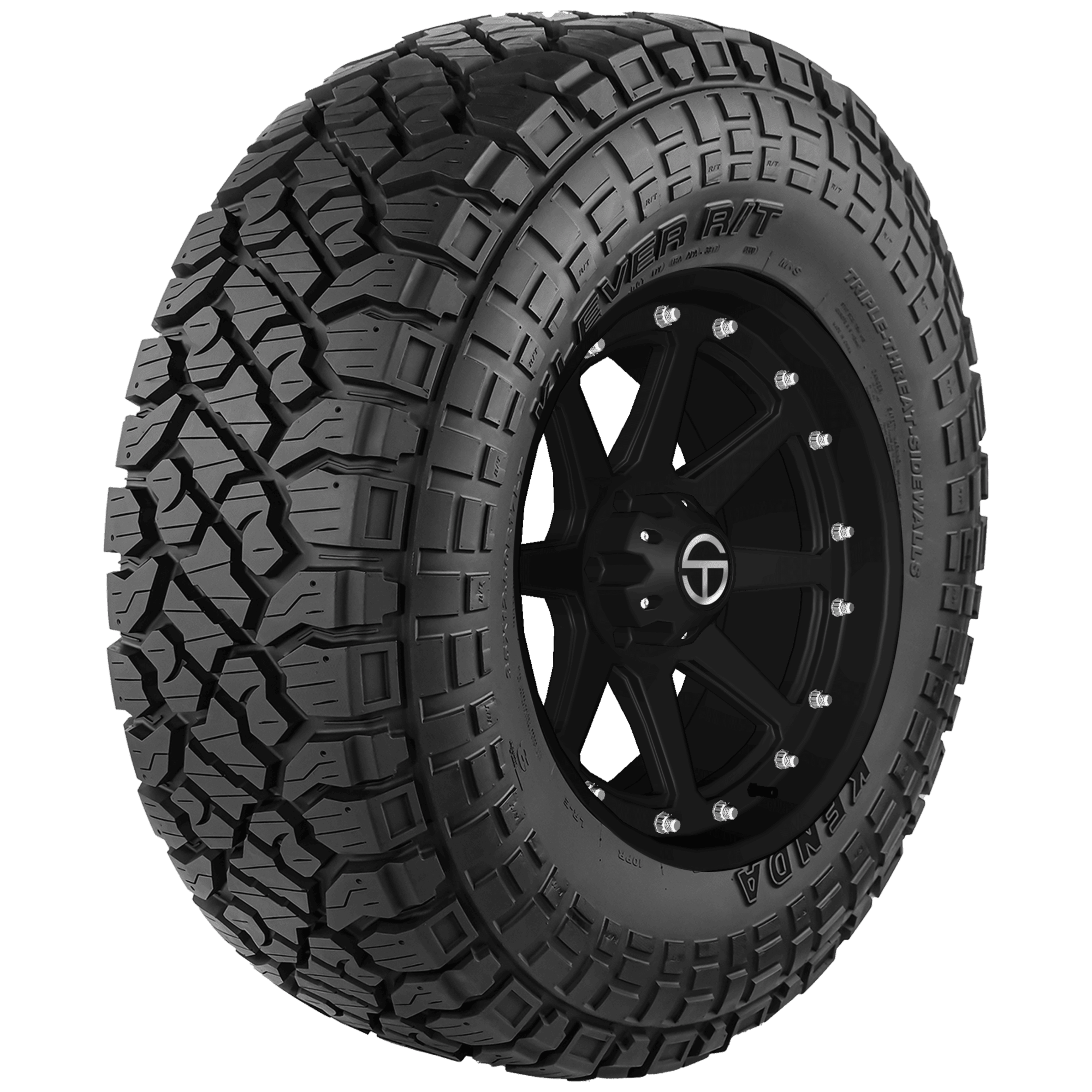 Made to conquer rugged terrains the Kenda Klever R/T KR601 is made with a Triple Threat Sidewall that includes 3 full carcass plies, aggressive sidewall tread, and robust bead protector for superior handling and traction in dry and wet weather conditions. The interlocking center tread blocks and high-density sipes aid in confident snow performance, plus the large groove reduces the risk of hydroplaning while delivering increased wet, and mud traction. The Klever R/T KR601 is a natural fit on the Chevrolet Silverado 1500, Dodge Durango, Ford Bronco, Jeep Wrangler, RAM 1500, Nissan Titan, Toyota 4Runner, and many other vehicles.