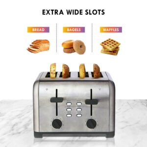 Kenmore 4-Slice Toaster Stainless Steel with Dual Controls, Wide Slot Gray