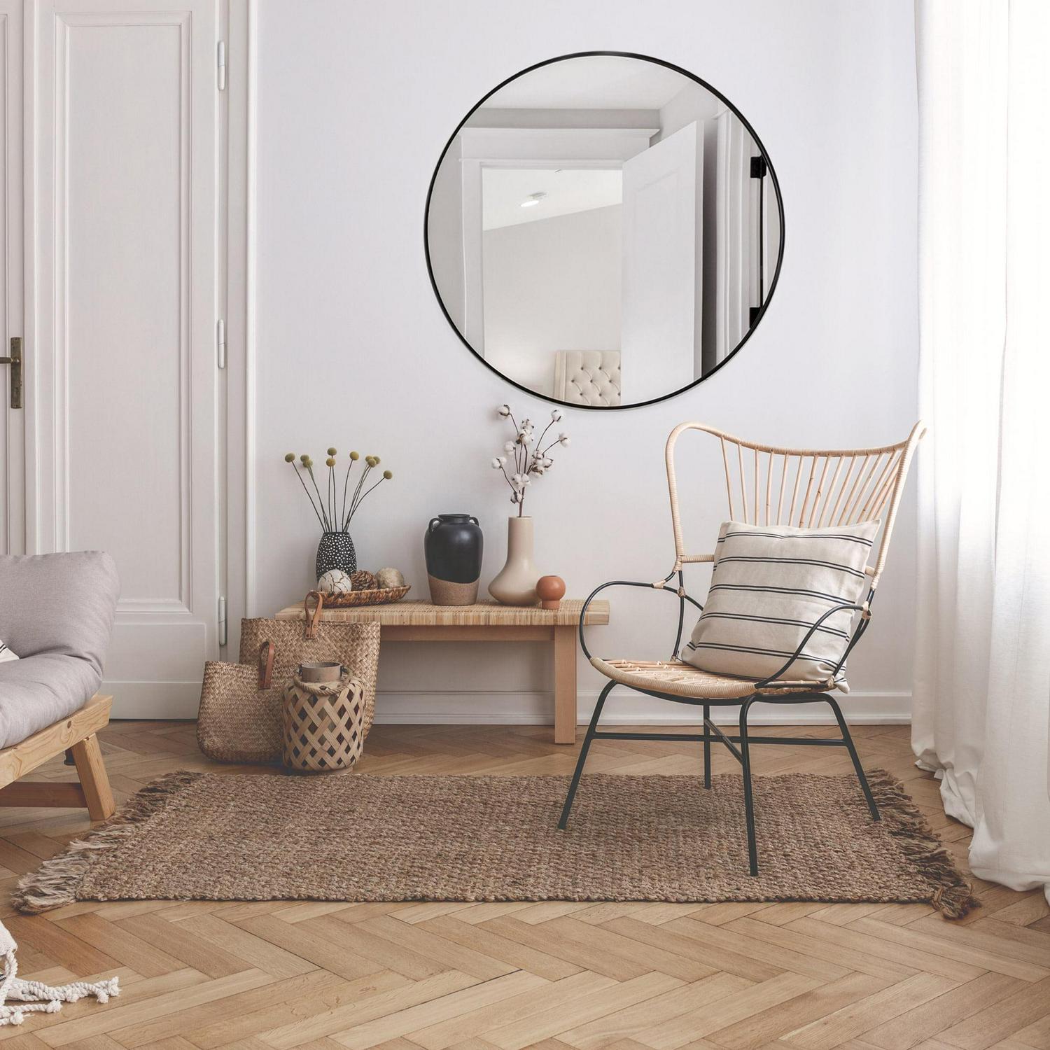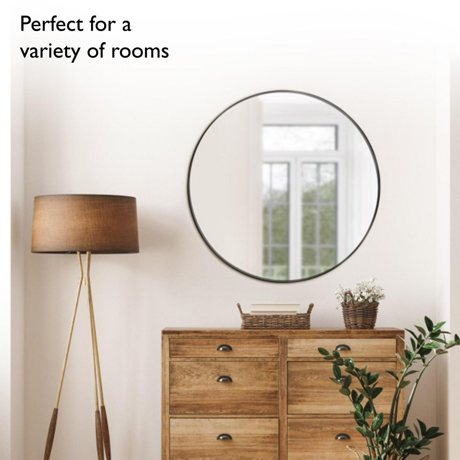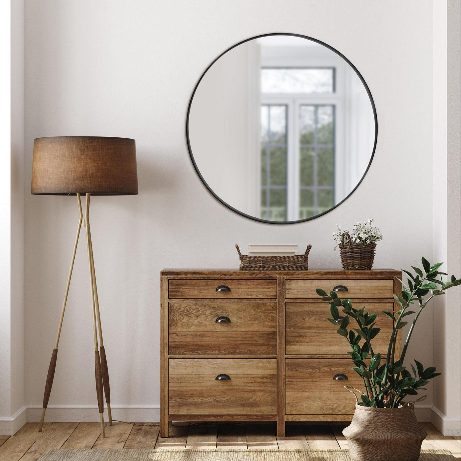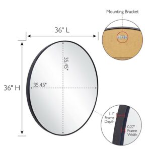 Kenna Round Wall Accent Mirror a 36-Inch, Modern Metal Framed a Living Room, Bedroom, Bathroom Vanity Mirror a Black a Design House, 596536-BLK