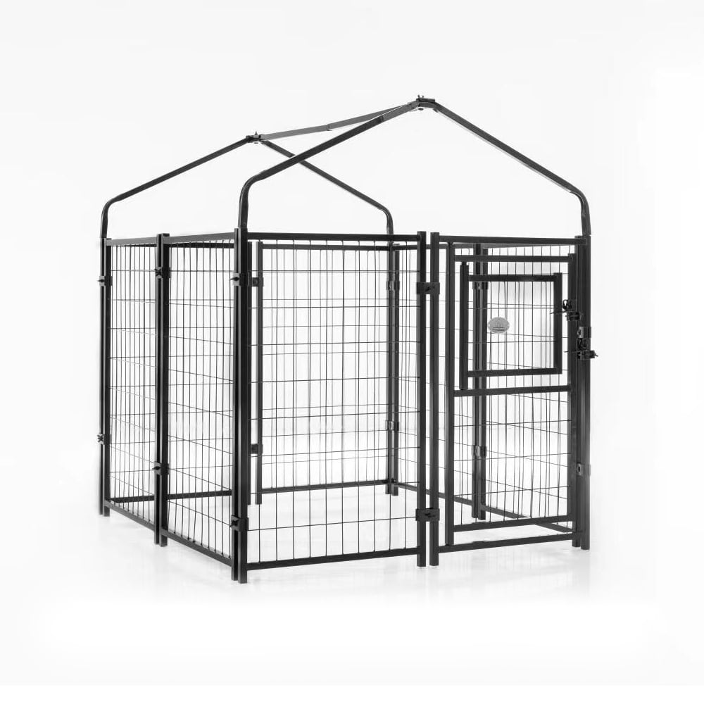 KennelMaster Welded Wire Dog Kennel Black 4ft x 4ft x 4.3ft with Cover