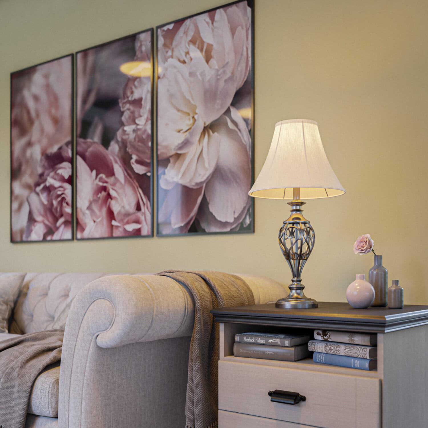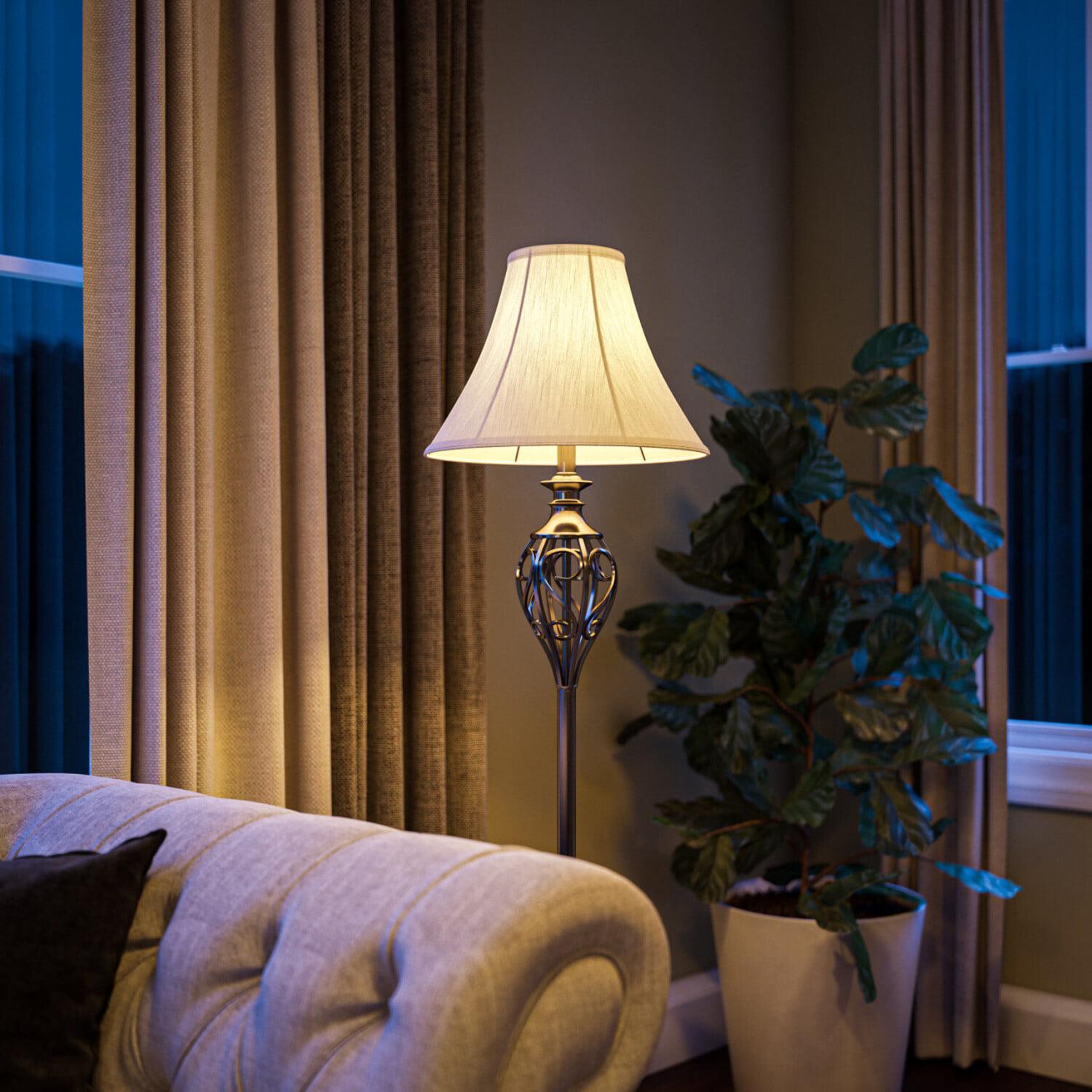 – LIGHTING PROFILE: The silver round fabric shade on all lamps are exquisitely designed to provide area filling ambient light.