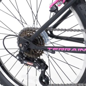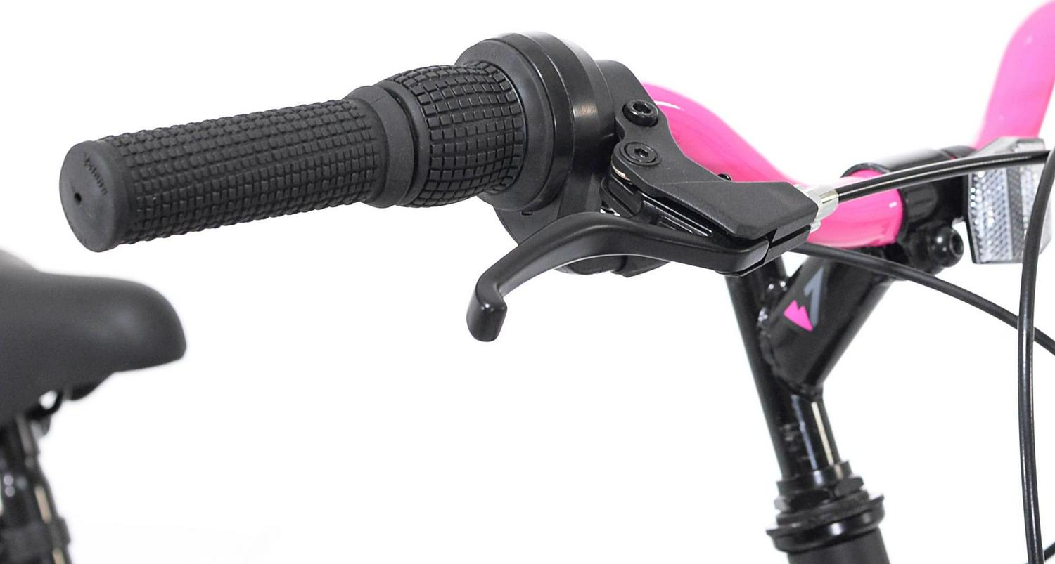 This Kent female Kobra child’s mountain bike will allow kids to ride in style. A tuned travel front shock offers a stable and comfortable ride by absorbing bumps. With a sturdy steel frame, this girl’s 20″ bike will track straight and stand up to heavy use. Shifting is handled with a 6-speed drivetrain featuring twist shifters. Lugged knobby tires send extra power to the ground and provide ideal traction. Front and rear linear-pull brakes help keep the rider’s speed in check for extra safety. The seat is padded to make it more supple and comfortable to sit on. It’s easily adjusted with no tools thanks to a quick-release lever clamp. With the Kobra, the fun doesn’t stop when the street ends.
