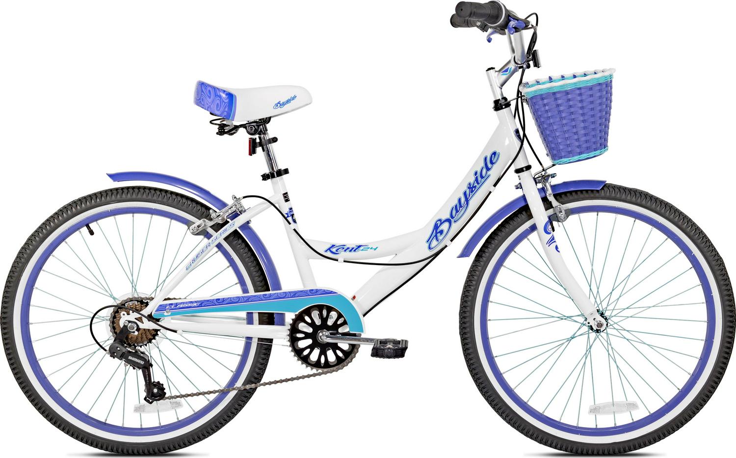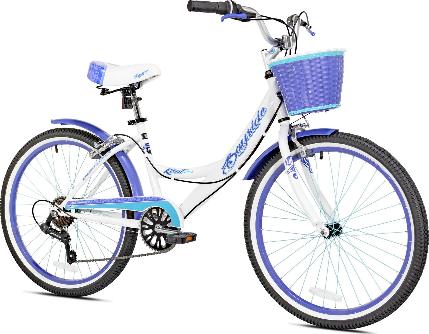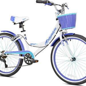 Kent 24 Bayside Multi-Speed Girl’s Bike, White/Purple
