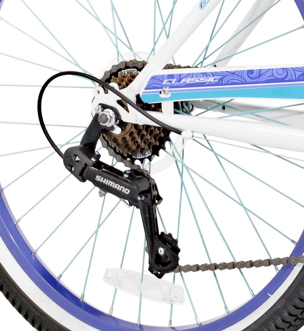 – 7-speed drive-train with a Shimano rear derailleur and an easy twist shifter