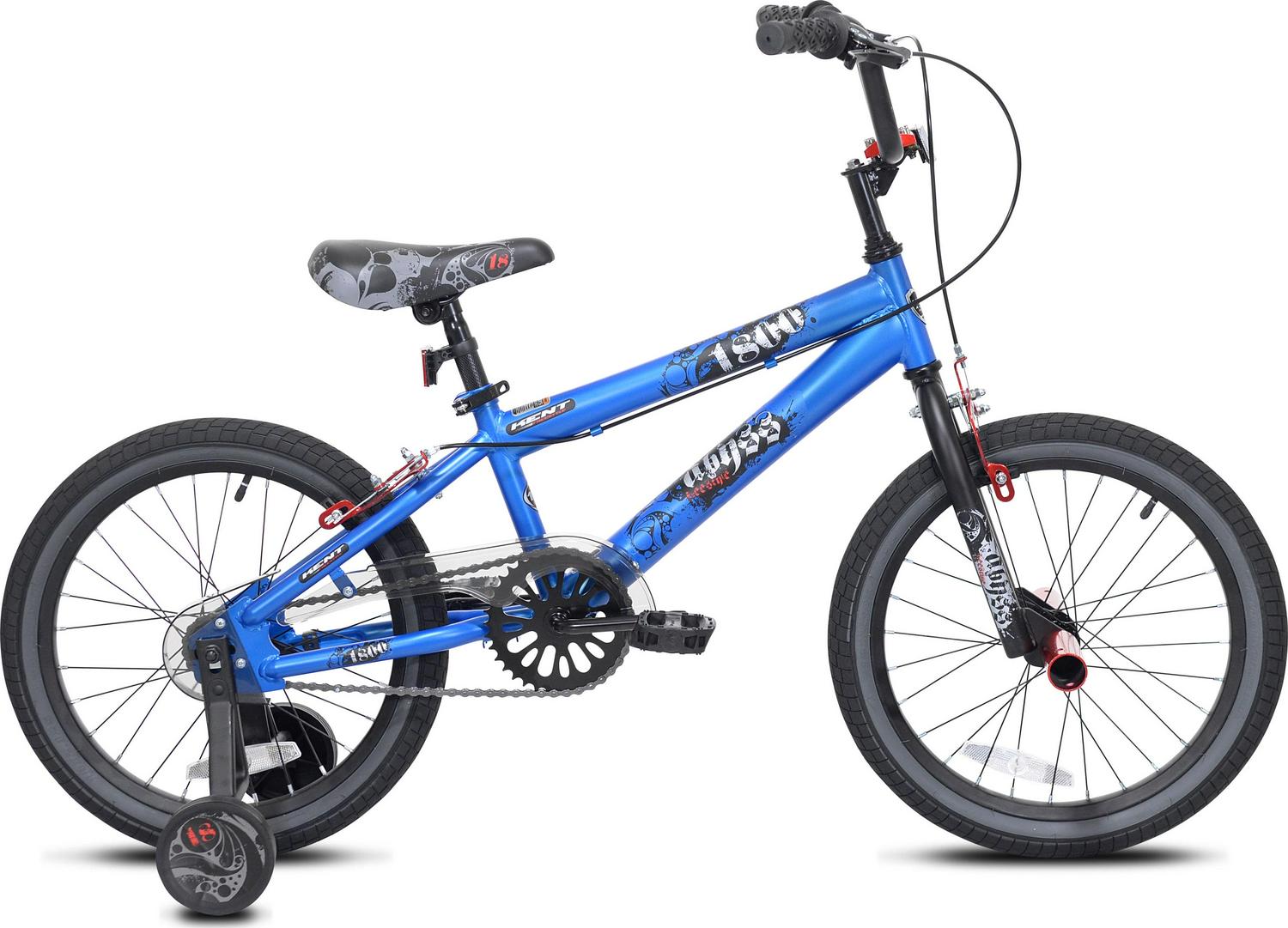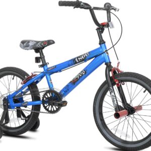 Children will enjoy the 18″ abyss bike from Kent. With the wind in their face and speeding down the sidewalk with the 18″ Kent abyss freestyle boys BMX bike, they will begin their biking adventures with this super cool bike. It has a sleek style and is a nice in-between model for the budding freestyler. This metallic blue bike has all the same features as a grown-up version, yet is suited for a little guy that’s not quite ready for full-size. It’s built with a steel frame for sturdiness and comes with removable training wheels for a smooth transition. This kid BMX bike has a saddle seat with a nice pad and hand brakes to ensure safe stops.