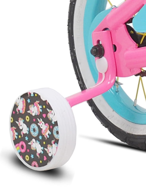 Steel Frame The adorable unicorn graphics add a charm and will help make your child feel confident and cool. Coaster brake Training wheels Adjustable seat 12″ Bicycle Adjustable handlebar