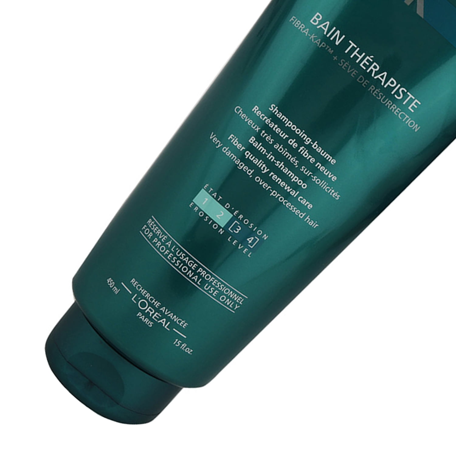 Kerastase Bain Therapiste Balm in Shampoo is designed for very damaged, over-processed fine, medium and thick hair. This shampoo with its unique jellified and creamy texture repairs the hair fiber while gently cleansing. This extra creamy shampoo renewal care envelops the fiber during cleansing to reduce friction.