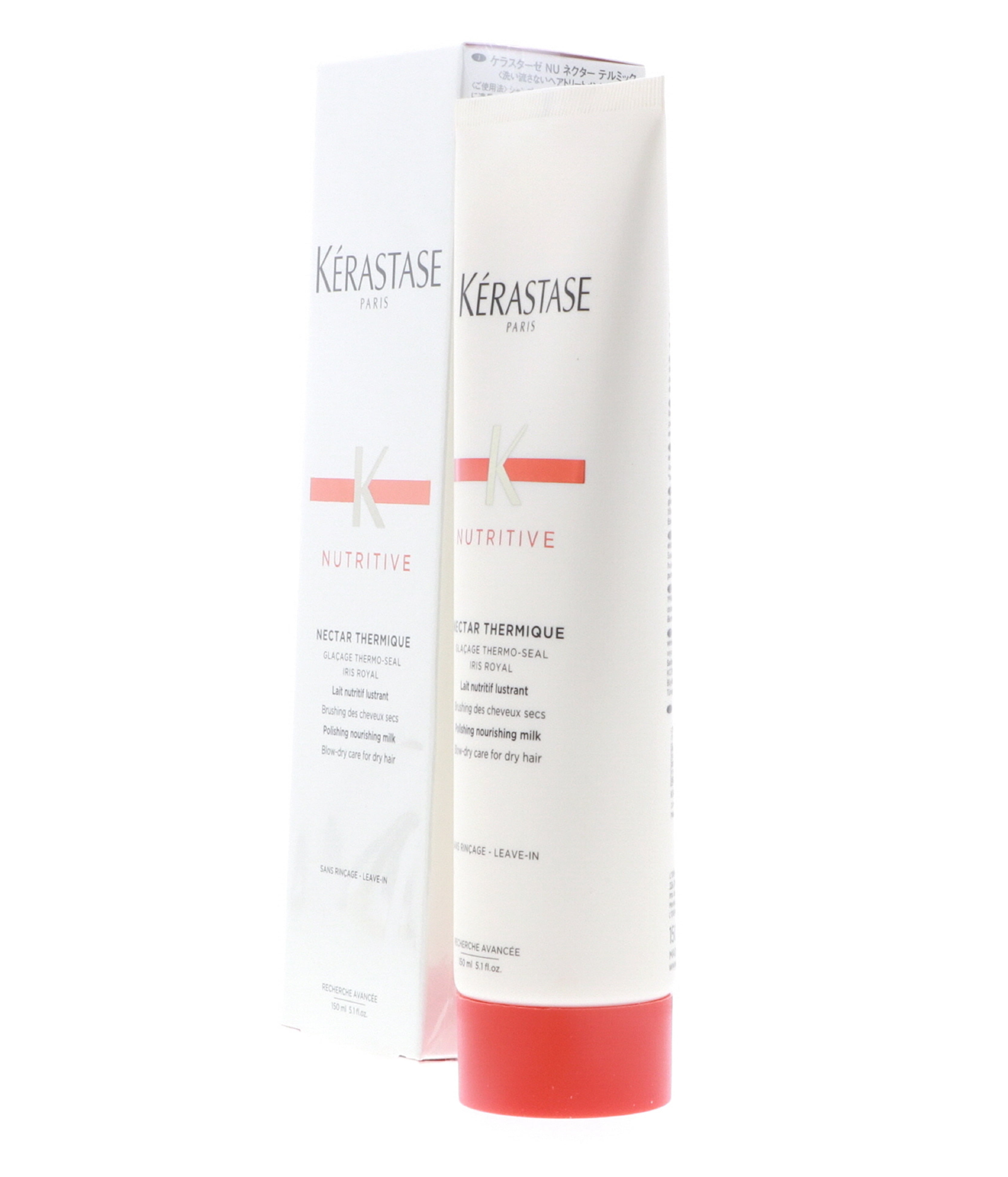 Kerastase Nutritive Nectar Thermique Nourishing Milk, 5.1 oz is a leave-in hair treatment that is designed to provide nourishment and protection to dry and damaged hair. This product is enriched with a combination of ingredients including iris rhizome extract, xylose, and vitamin E that work together to nourish and protect the hair from heat styling tools and other environmental stressors.