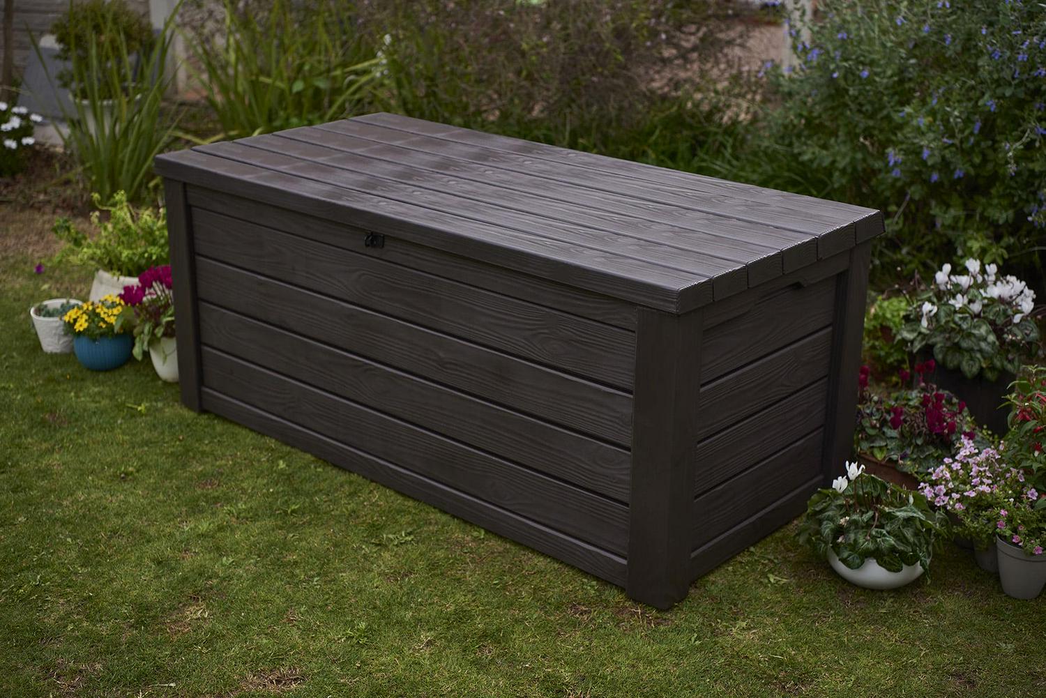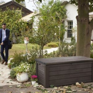 Keter Eastwood 150 Gallon Deck Box, Resin Wood Look Brown
