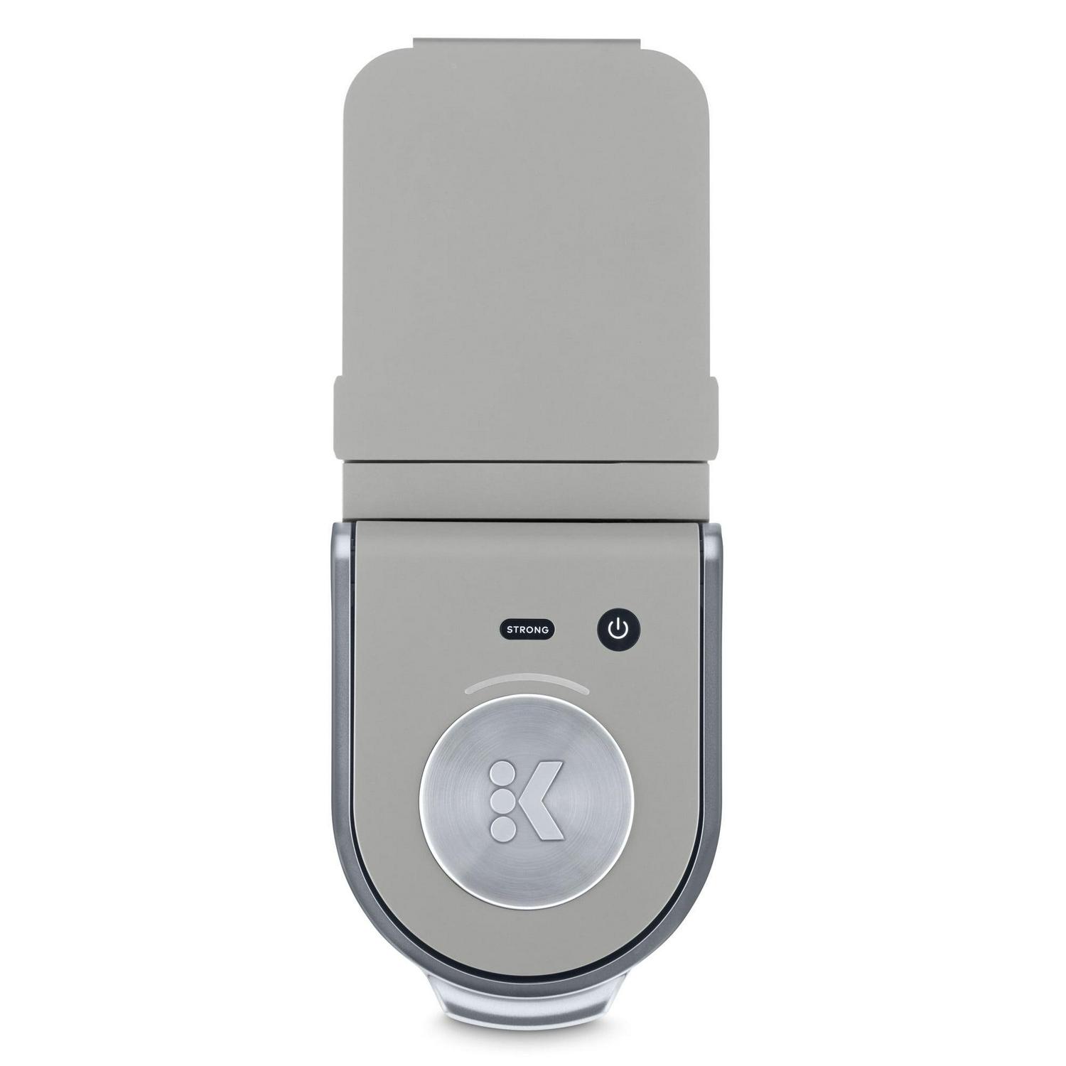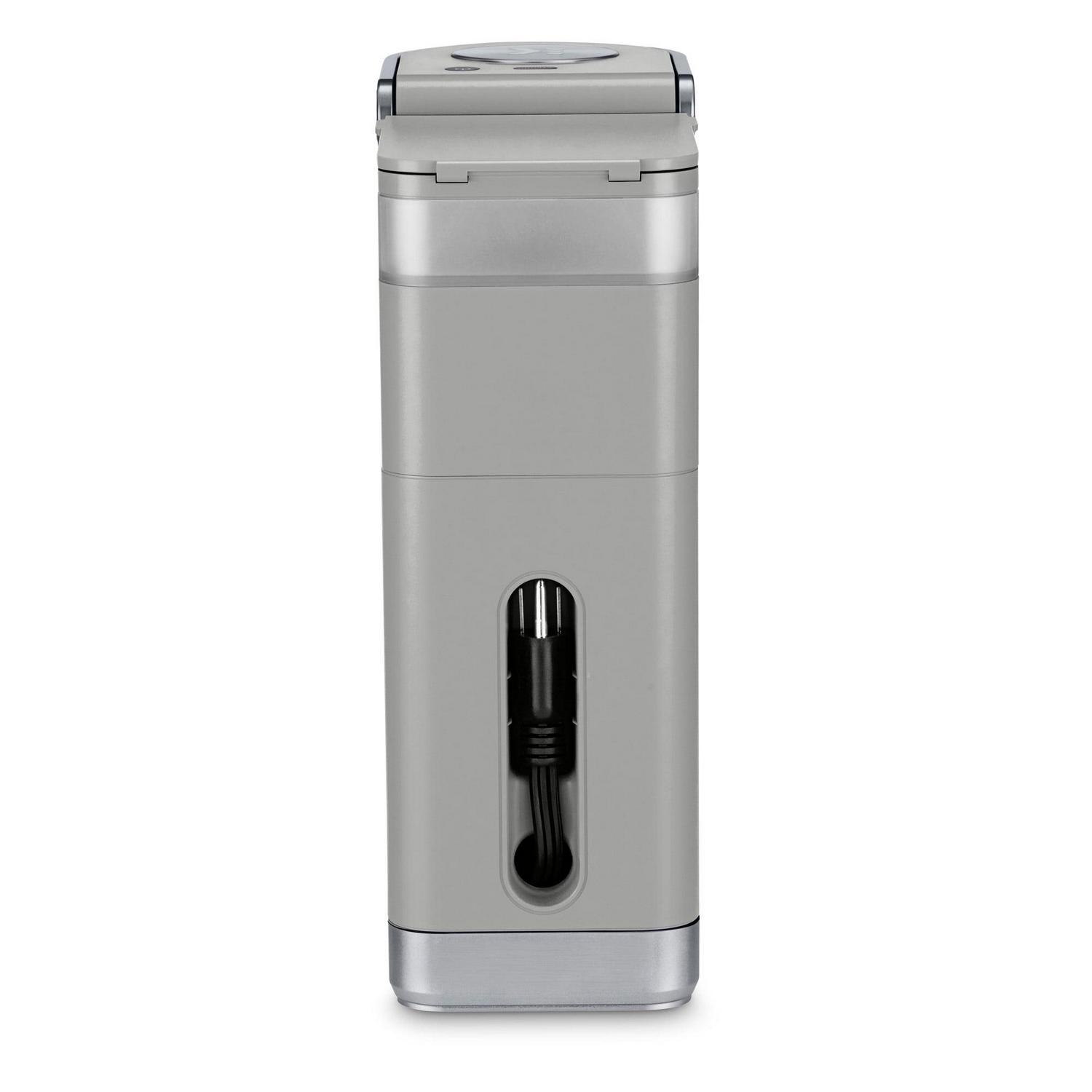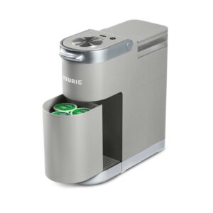 The Keurig K-Mini Plus single serve coffee maker in Studio Gray features a new sleek design, and at less than 5 inches wide is the perfect size for any space or occasion. The K-Mini Plus brewer is effortlessly simple to use, just add fresh water to the removable reservoir, pop in your favorite K-Cup pod, press the brew button and enjoy fresh brewed, delicious coffee in minutes. Choose from hundreds of delicious K-Cup pod varieties to enjoy 6-12oz of your favorite coffee, tea, cocoa, and iced beverages. And for those who like a bolder brew, select the Strong button to increase the strength and bold taste of your coffee. With a single cup removable reservoir, a pod storage unit to store 9 of your favorite K-Cup pods, and cord storage, the K-Mini Plus coffee maker is the portable brewer that makes anywhere perfect for great coffee. The K-Mini Plus coffee maker is available in a variety of matte finish colors with silver detailing on the handle and drip tray. Based on consumer feedback, we have updated the K-Mini Plus Brewer. Customer reviews have been removed that relate to the previous version of the brewer. Weight: 6.5 lb. Condition – New.