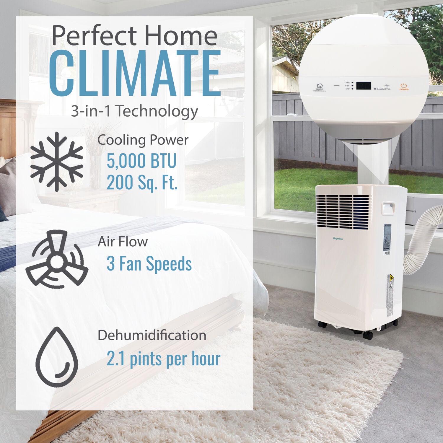 Keystone 5,000 BTU 115-Volt Portable Air Conditioner with Remote, White, KSTAP05PHA