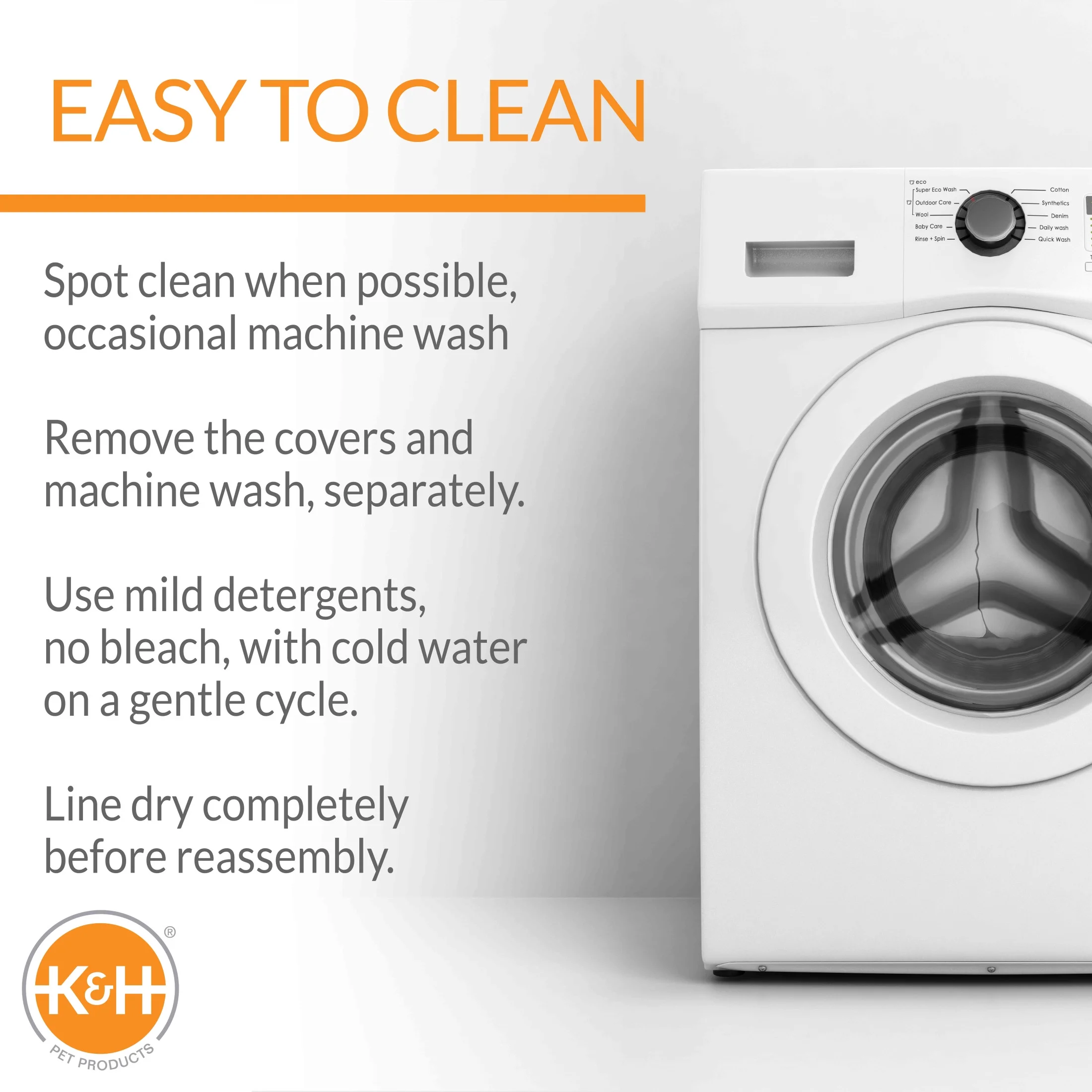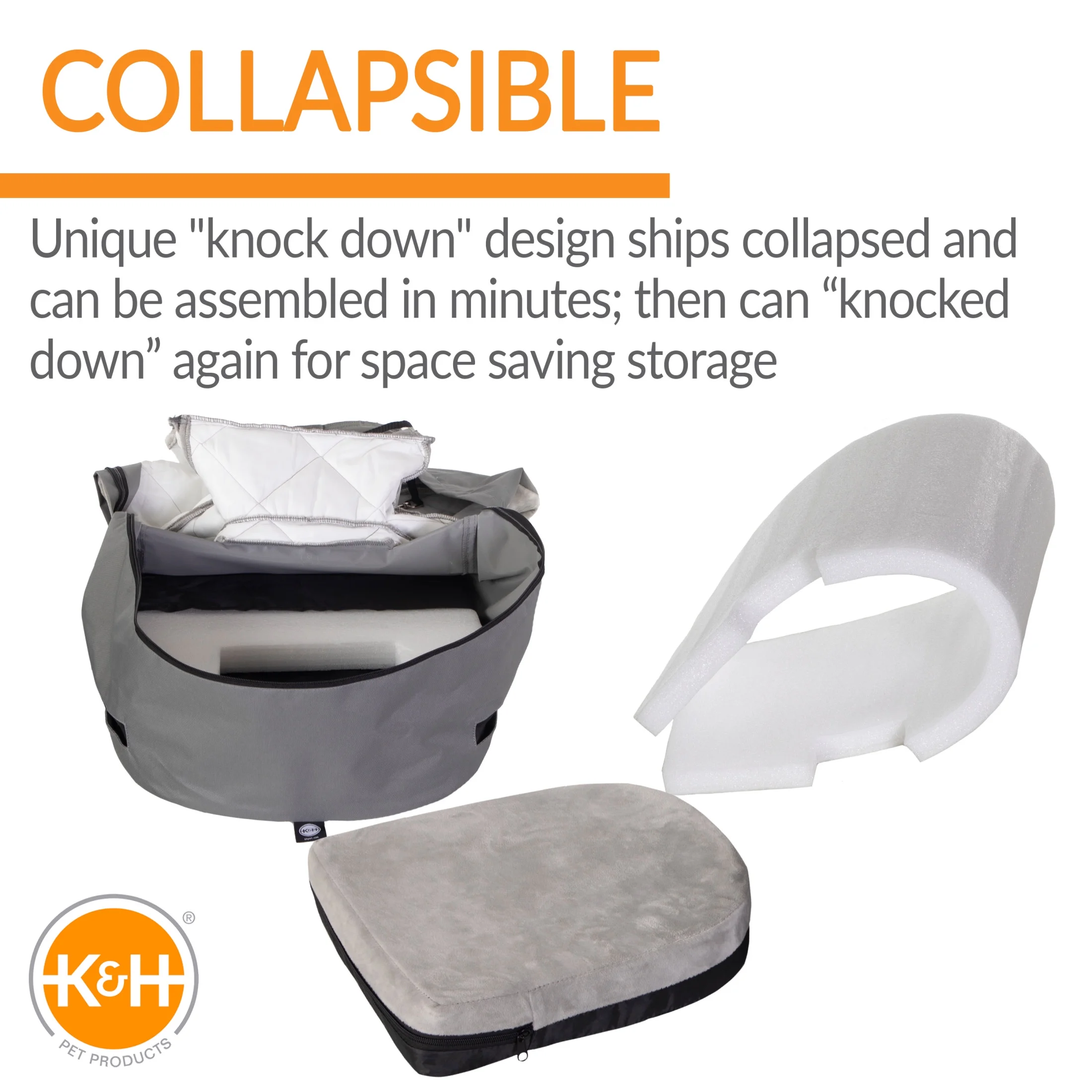 K&H Bucket Booster Pet Seat Collapsible is just like the K&H Original Bucket Booster, but has a unique “knock down” design that ships collapsed and can be assembled in minutes; then knocked down/collapsed again for space saving storage. This collapsible pet car seat provides a safe and controlled location for your pet to ride, all the while elevating them for an easier view out the window. The K&H Bucket Booster has a durable heavy-denier fabric exterior and contrasting plush quilted fleece interior for your pet’s comfort. Designed to fit in either the front or back seat of your vehicle, the contoured back ensures a snug fit inside of your vehicle. The K&H Bucket Booster securely buckles in and your seat belt is hidden under the removable cushion. It is extremely easy and quick to install and uninstall. The front dips down so your pet can easily get in and out, and has a firm foam bolster around the edge. Bucket Booster includes tethers that can latch to your pet’s harness to help restrain your pet. This model knocks down and is collapsible for storage.