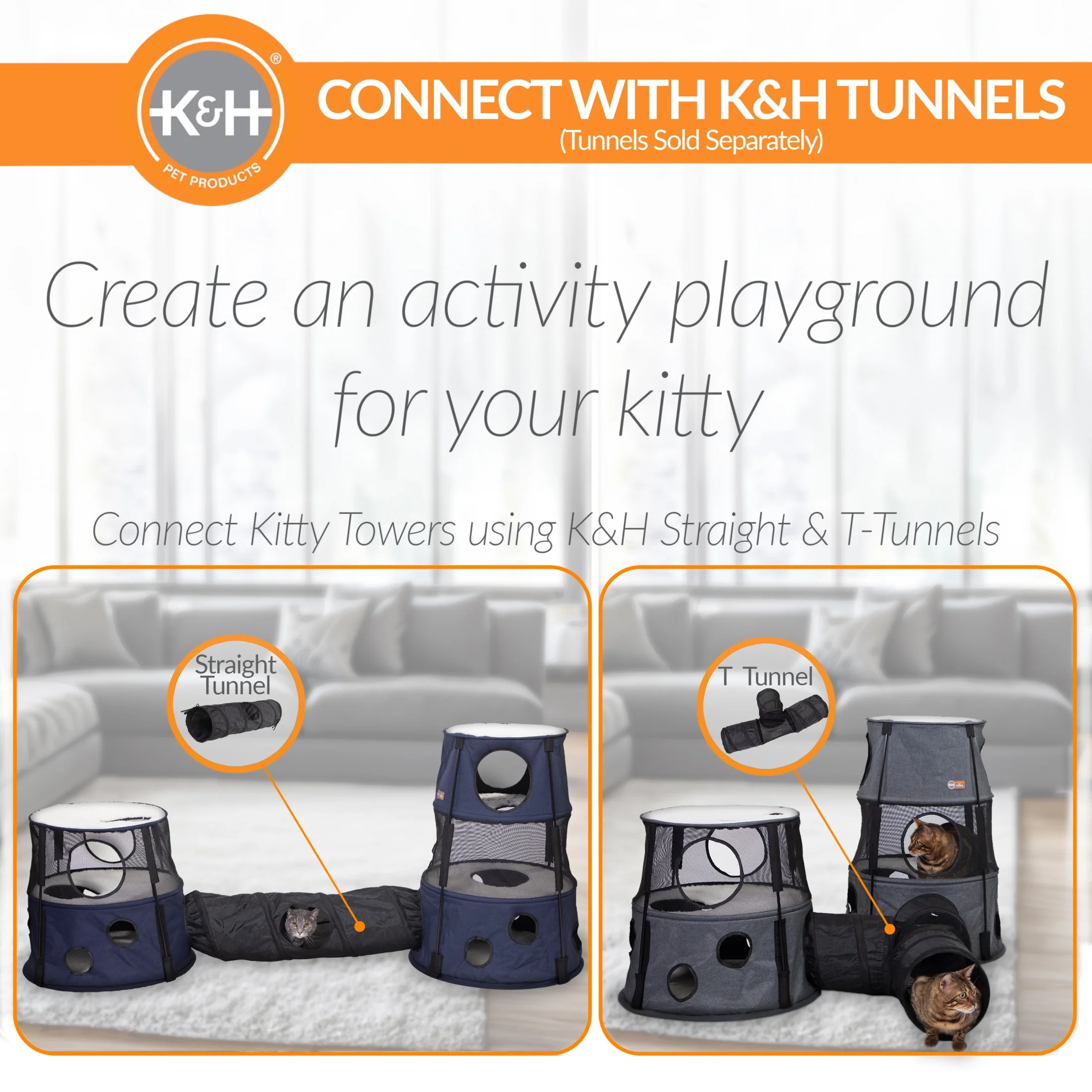 20″ tall cat tree with 2 levels of fun with interior access for feline antics or a get-away snooze cat cave Multiple entrances that are 7 inches wide to give even large cats access; these also allow the additional K&H Kitty Tunnels (sold separately) to connect multiple Kitty Towers Round cat cube with multiple peep holes along the bottom and mesh top floor windows allow areas for constant surveillance Lightweight cat tower, easy to move, sturdy design assembles and dissembles quickly with 4 fiberglass poles that secure in the sides Levels are tiered slightly smaller as they go up for super stability; super soft ultra-fleece sleeping surfaces on all levels Gorgeous easy wipe clean oxford fabric with vinyl backing will be durable for years Designed by K&H with OVER 20 years of experience in creating safe, innovative, quality products for pets; one year limited warranty This 2 Story model measures 22 inches in diameter and is 20 inches tall