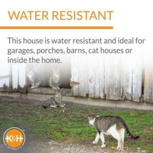 – This outdoor heated cat house has been tested & certified by MET Labs and exceeds USA/CA electrical safety standards; K&H doesn’t just use safety listed parts, we safety certify the entire product