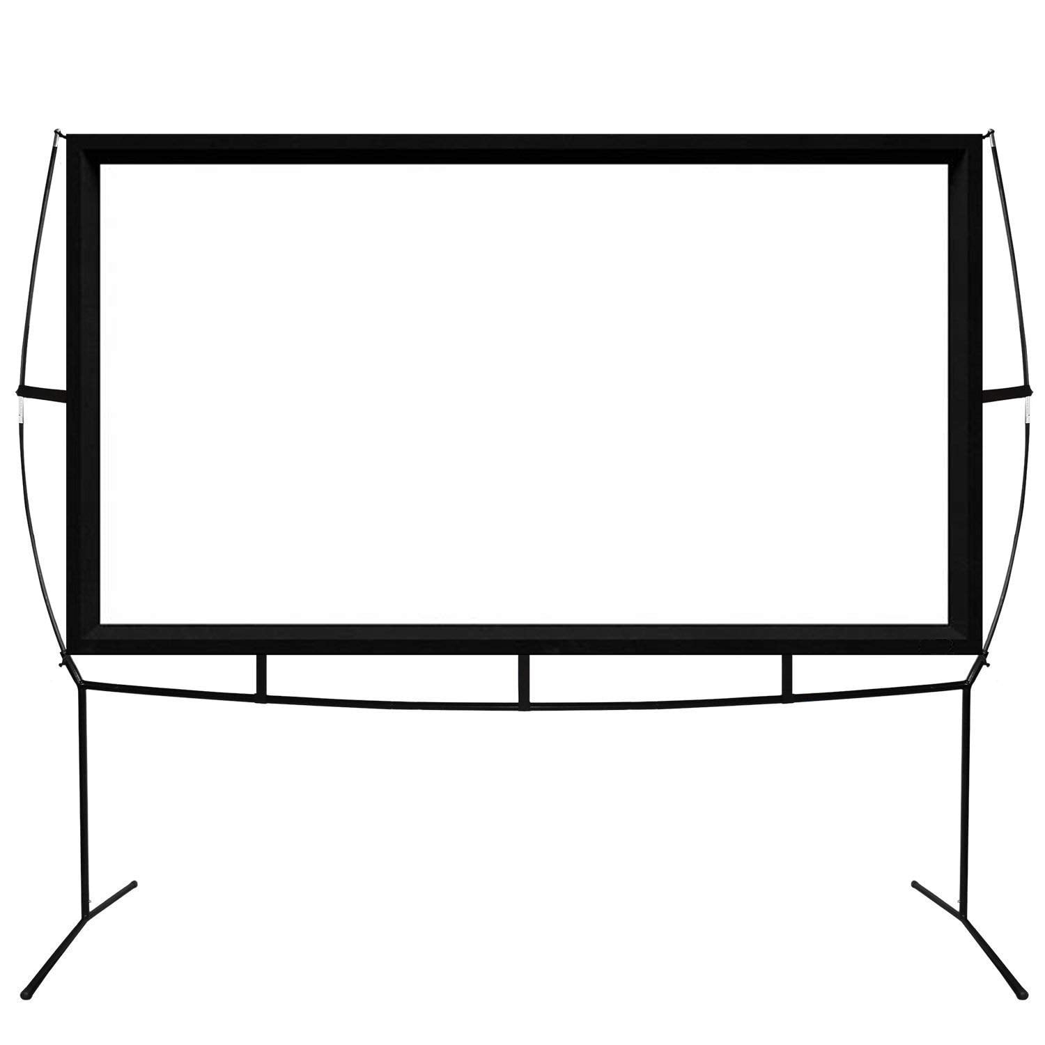 VERY EASY TO SET UP– It takes less than 10 minutes to fully set up the entire assembly. EXTREMELY STABLE — An unique and rigid support helps maintain so much stability that it would seem as if it were fixed on a wall. CONVENIENT TO CARRY — A foldable setup stand made out of special lightweight materials makes it the most convenient portable outdoor projection screen in existence. JUMBO OVERSIZE Screen — 100 Inches diagonal screen no power required, easier than inflatable outdoor screens, Easy to use. OUTDOOR MOVIE THEATER — brings your family together with some popcorn for a night of family fun in the backyard, camping, tailgating, or a fun Summer party.