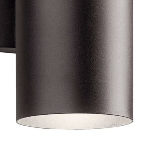 The Kichler Cylinder 3000K LED 12 in. Textured Architectural Bronze Wall Light is a sleek option for your outdoor lighting. It features LED light that consumes less energy while providing optimum illumination. Its frame is made of sturdy aluminum to ensure durability and lasting use. This outdoor light is ETL listed for worry-free use in wet locations. Ideal for illuminating entryways, garage doorways, patios, porches and more.