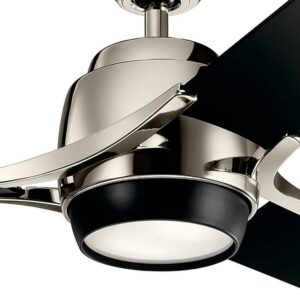 Kichler Lighting-300060PN-Collection: Zeus, Material: Steel, Finish Color: Polished Nickel, Blade Span: 60″, Blade Color: Black, Number Of Blades: 3, Blade Pitch: 14 , Fan Motor Size: 188MM X 25MM mm, Fan Motor Type: AC, Hanging Method: Stem, Stem Rod Number And Lengths Included: 1-4.5, Light Kit Type: Integrated, Lamping Type: LED, Cri: 80, Color Temperature: 3000 Kelvin, Control Type: Wall, Wet Location: Dry Rated, Desc: The 60 inch ceiling fan from the Zeus collection touts simple, yet powerful lines, a Brushed Nickel finish and sleek blade arm design, perfect for a contemporary setting. Its three interconnected blades feature a Silver finish and also include two irons per blade. Zeus features an LED focal light with transparent polycarbonate diffuser. Rod Length(s): 1-4.5 / Dimable: Yes. ,-Zeus – Ceiling Fan with Light Kit – 18 inches tall by 60 inches wide-Polished Nickel Finish