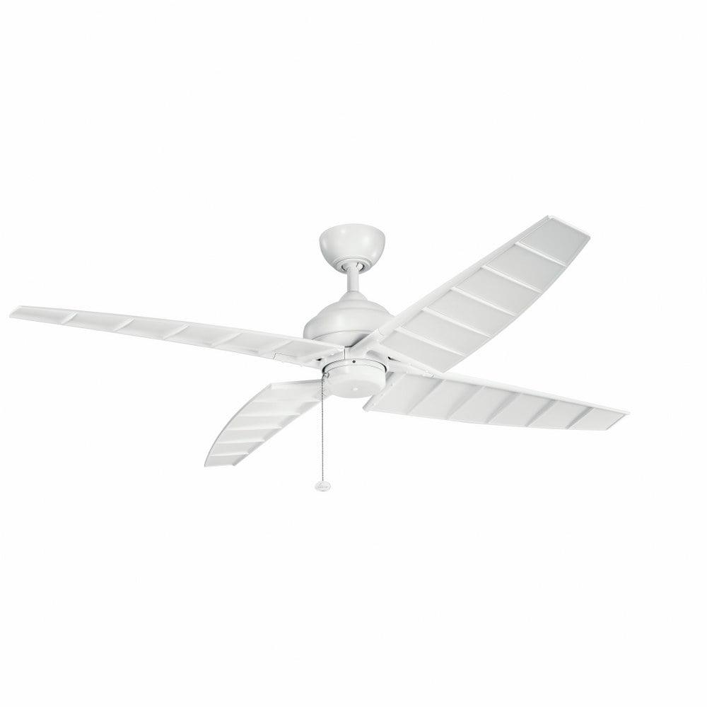 This 60 ” Surrey Climatesâ ¢ ceiling fan in a Matte White finish is reminiscent of summer bike rides along the boardwalk and a cool nautical breeze: Surrey’s slatted blades and laid-back style bring a beachy feel to rooms inside or out. Crafted from Kichler’s CLIMATESâ ¢ materials, the fan finish is designed to withstand harsh outdoor elements for long-lasting beauty. Add an optional Kichler light kit for enhanced functionality.