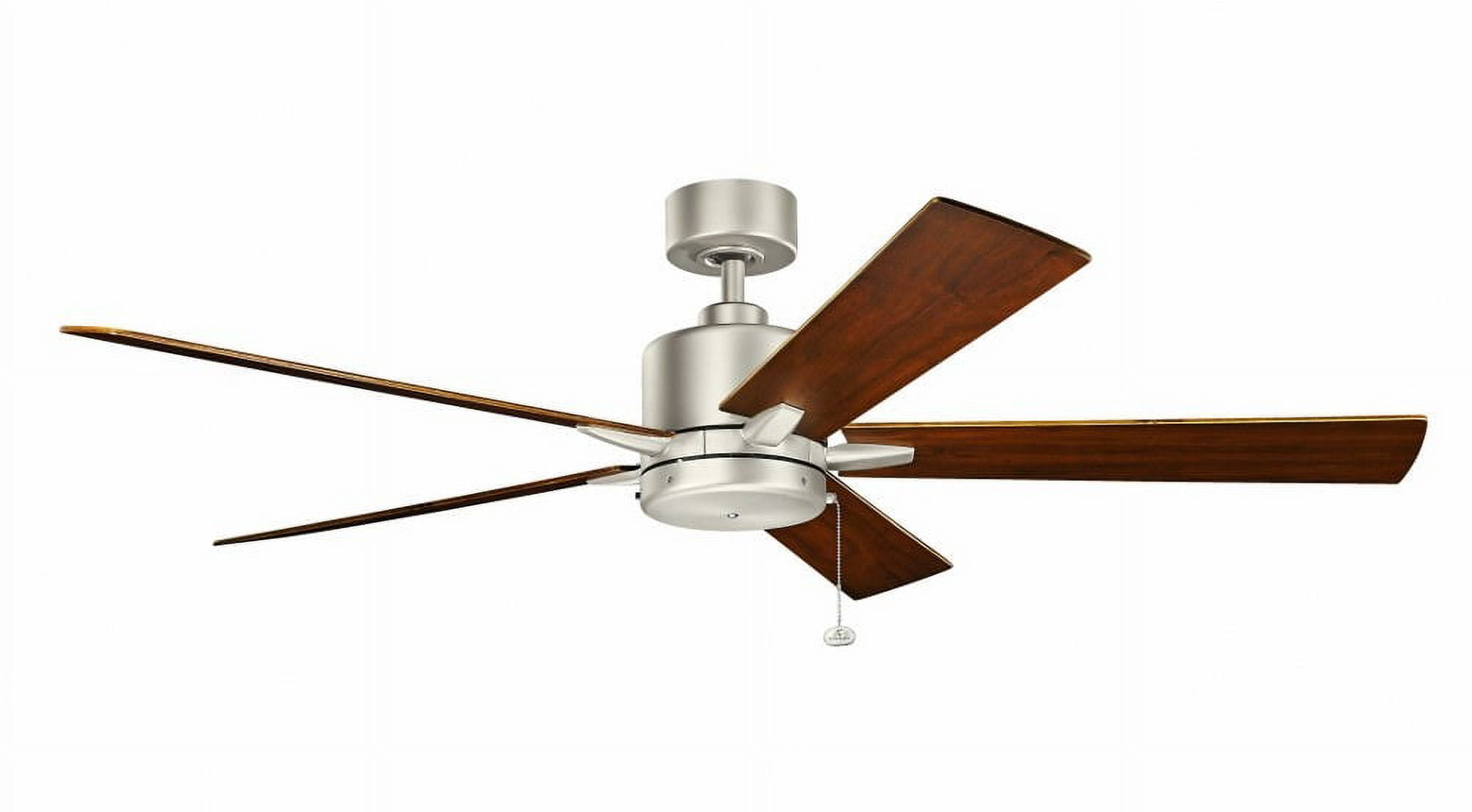 With an industrial style influenced by minimalist designs, the Lucian II collection of ceiling fans from Kichler is the perfect addition to your modern home. This pull-chain operated ceiling fan comes in a classy brushed nickel finish with five walnut finish manufactured wood blades with a silver finish reversible other side. The Lucian II collection is rated for use indoors.