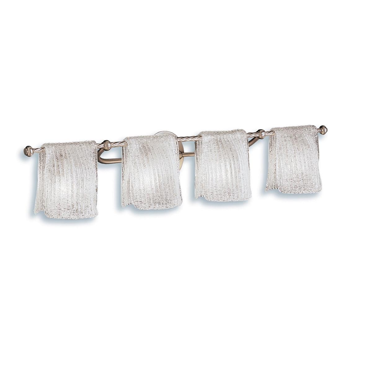 Kichler Lighting-6314NI-Collection: Drapes, Material: Steel, Finish Color: Brushed Nickel, Width: 35.25″, Height: 6.25″, Depth: 7″, Height From Outlet Box: 5″, Backplate Width: 5″, Backplate Length: 5″, Lamping Type: Incandescent, Number Of Bulbs: 4, Wattage: 60 Watts, Dimmable: No, Moisture Rating: Damp Rated, Desc: Just When You Think You’Ve Seen It All, Kichler Raises The Bar In Bath Lighting By Expanding Traditional Bath Design. This 4 Light Wall Fixture From The Drapes Collection Accomplishes A Superb Ambiance Through Creating The Look Of Towels On A Bar. This Innovative Design Coupled With A Brushed Nickel Finish And Clear Ice Glass Will Completely Transform The Look Of Your Bathroom. Back Plate Height: 5.00 / Back Plate Width: 5.00. ,-4 Light Wall Mount – With Transitional Inspirations – 6.25 Inches Tall By 35.25 Inches Wide