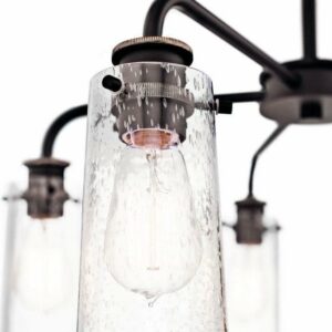 Add a touch of industrial-chic appeal to your setting with the Kichler Braelyn 43058CLP 5 Light Chandelier. Constructed from quality steel, this striking chandelier boasts five lights, complemented by clear seeded glass shades. The fetching pewter finish lends elegance and styling versatility.