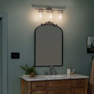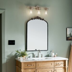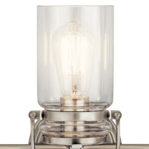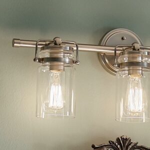 Brighten your room with a modern, industrial inspired design that brings farmhouse flair to vintage and transitional decor. The Kichler Brinley 24 in. 3-Light Brushed Nickel Vanity Light creates a retro vibe mixed with modernity. Inspired by mason jars, the Brinley vanity light is perfect in several aesthetic environments, including modern vintage and transitional. The clear glass shade provides ample illumination to your space.