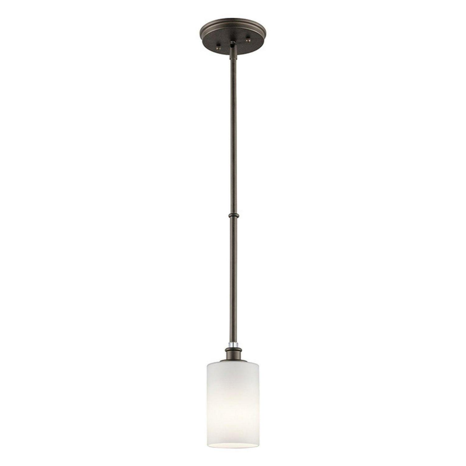 The sleek and blissfully simple Kichler Joelson 43927L18 Pendant Light features a rod suspension system and satin etched cased cylindrical shade. To ensure a good match to your space, this pendant light is offered in a choice of available finishes. It boasts an ENERGY STAR rating for energy efficiency and requires one 10-watt LED bulb, which is included.