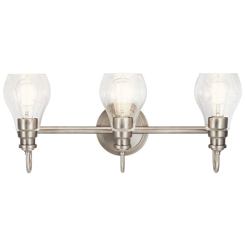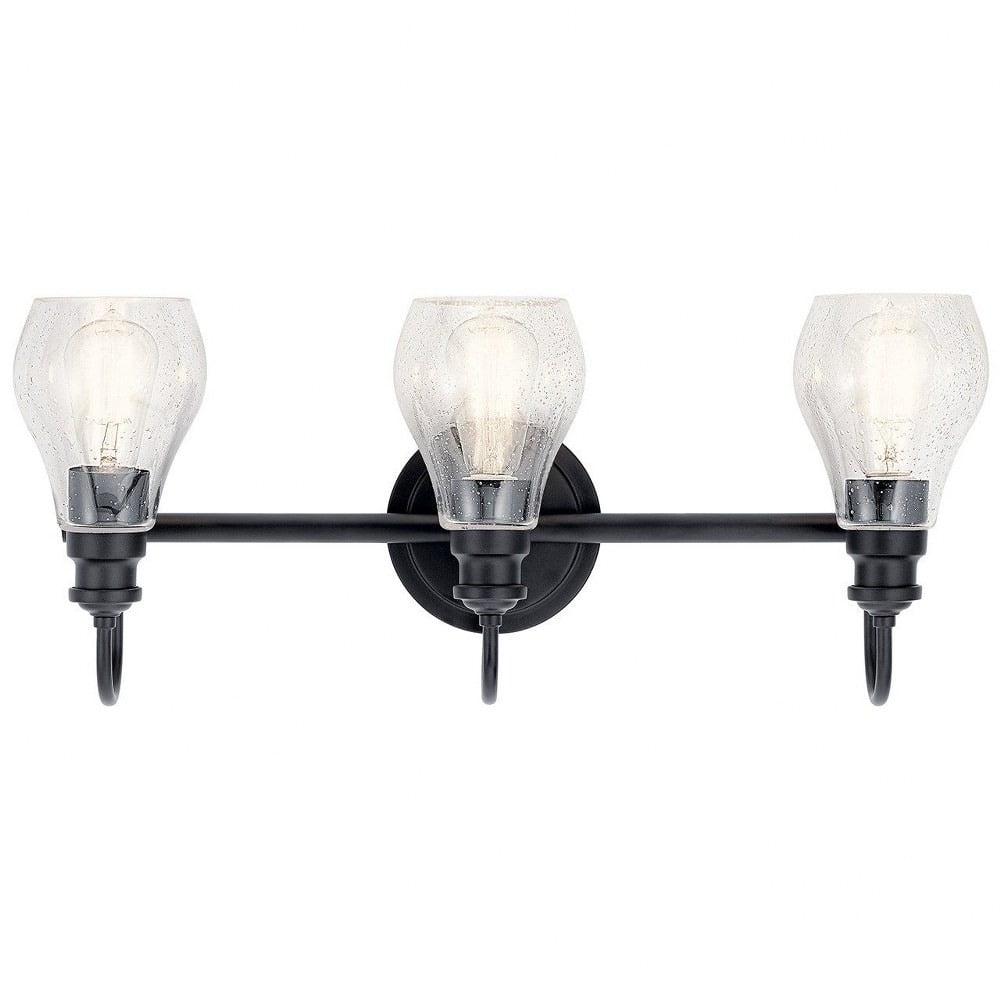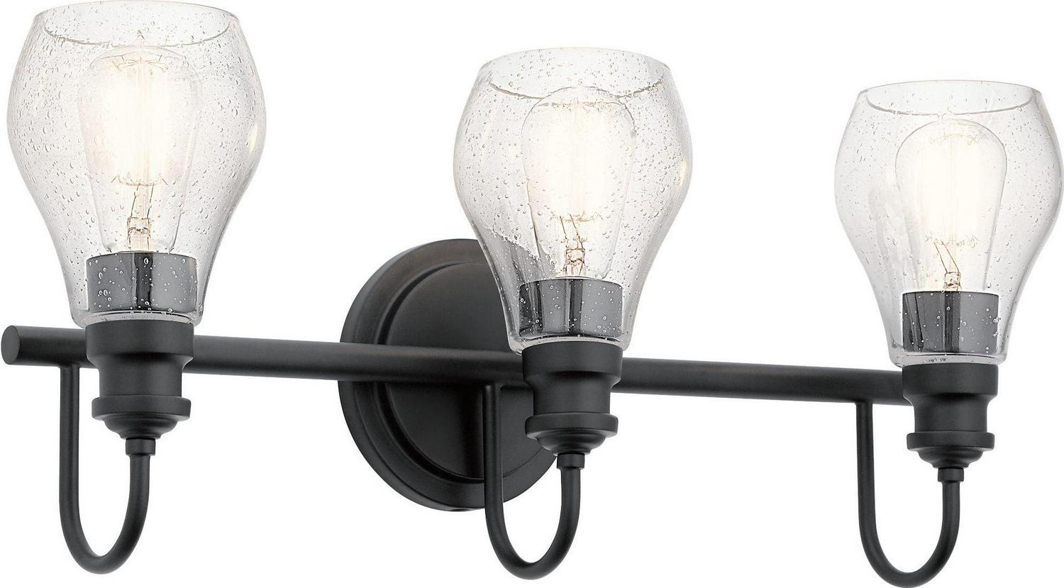 This 3-light bathroom vanity light from Kichler is a part of the Greenbrier collection and comes in a black finish.