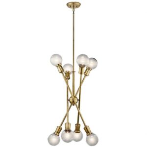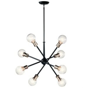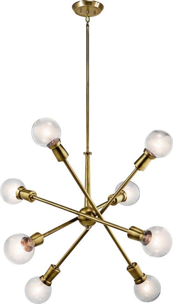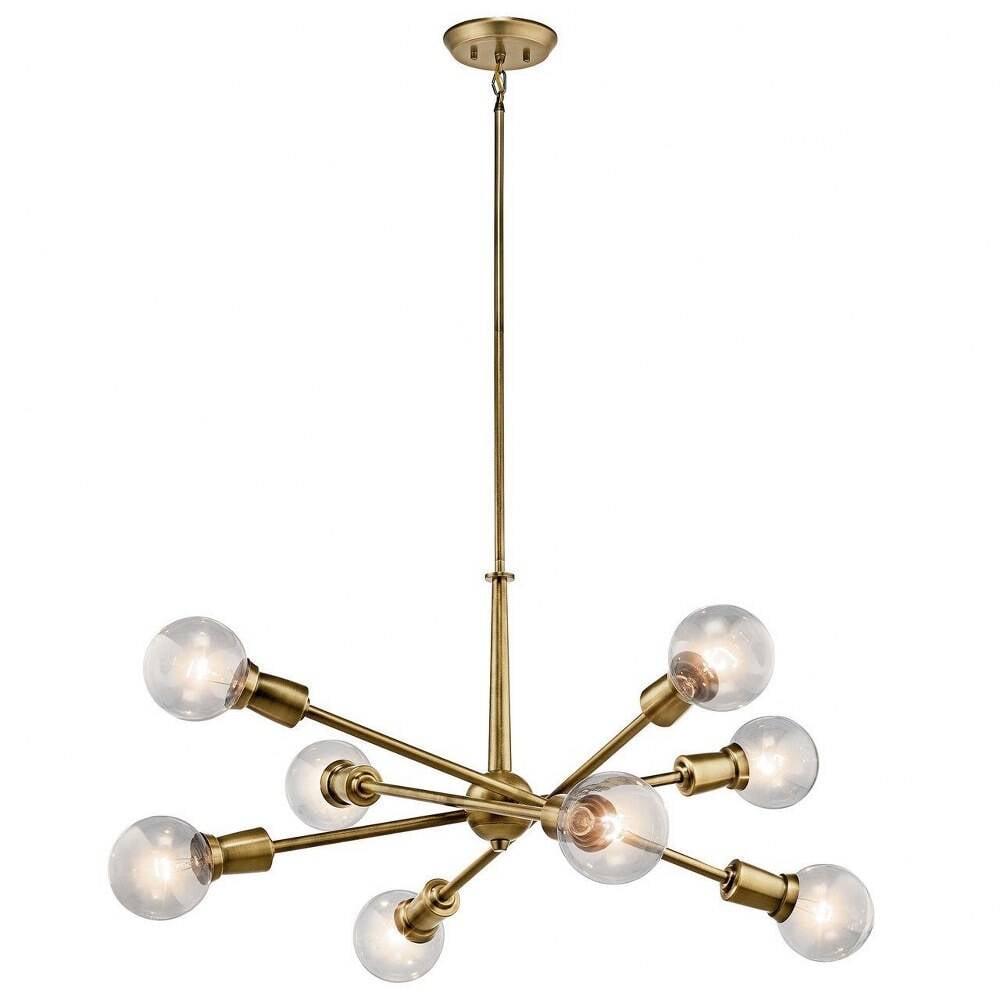 Kichler Lighting-43118NBR-Collection: Armstrong, Material: Steel, Finish Color: Natural Brass, Width: 30″, Height: 26″, Chain Length: 36″, Lamping Type: Incandescent, Number Of Bulbs: 8, Wattage: 100 Watts, Dimmable: No, Moisture Rating: Dry Rated, Desc: This Mid-Century 8 light chandelier in Black from the Armstrong collection features a in.sputnikin. design with adjustable arms allowing you to customize the light for just the right look. Sloped Ceiling Adaptable: Yes / Chain Length: 36.00. ,-Armstrong – 8 Light Large Chandelier – with Contemporary inspirations – 26 inches tall by 30 inches wide-Natural Brass Finish -Traditional Installation