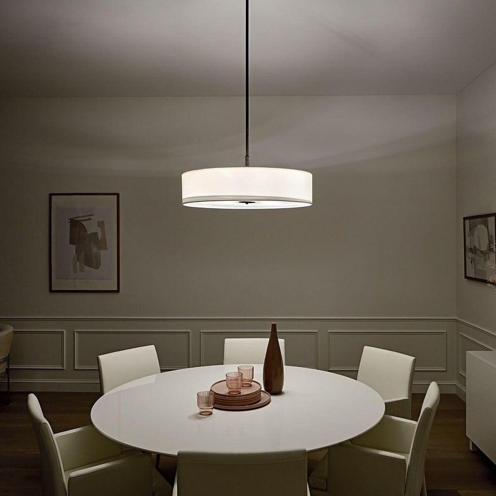 Kichler Lighting-42196CLZ-Material: Steel, Finish Color: Classic Bronze, Width: 30″, Height: 12″, Chain Length: 36″, Lamping Type: Incandescent, Number Of Bulbs: 5, Wattage: 100 Watts, Dimmable: No, Moisture Rating: Dry Rated, Desc: This 5 light transitional pendant features a pleasing drum shape in a Black finish. Chain Length: 36.00 / Shade Dimensions: 30.00 x 7.00. ,-5 light Pendant – with Transitional inspirations – 12 inches tall by 30 inches wide-Classic Bronze Finish