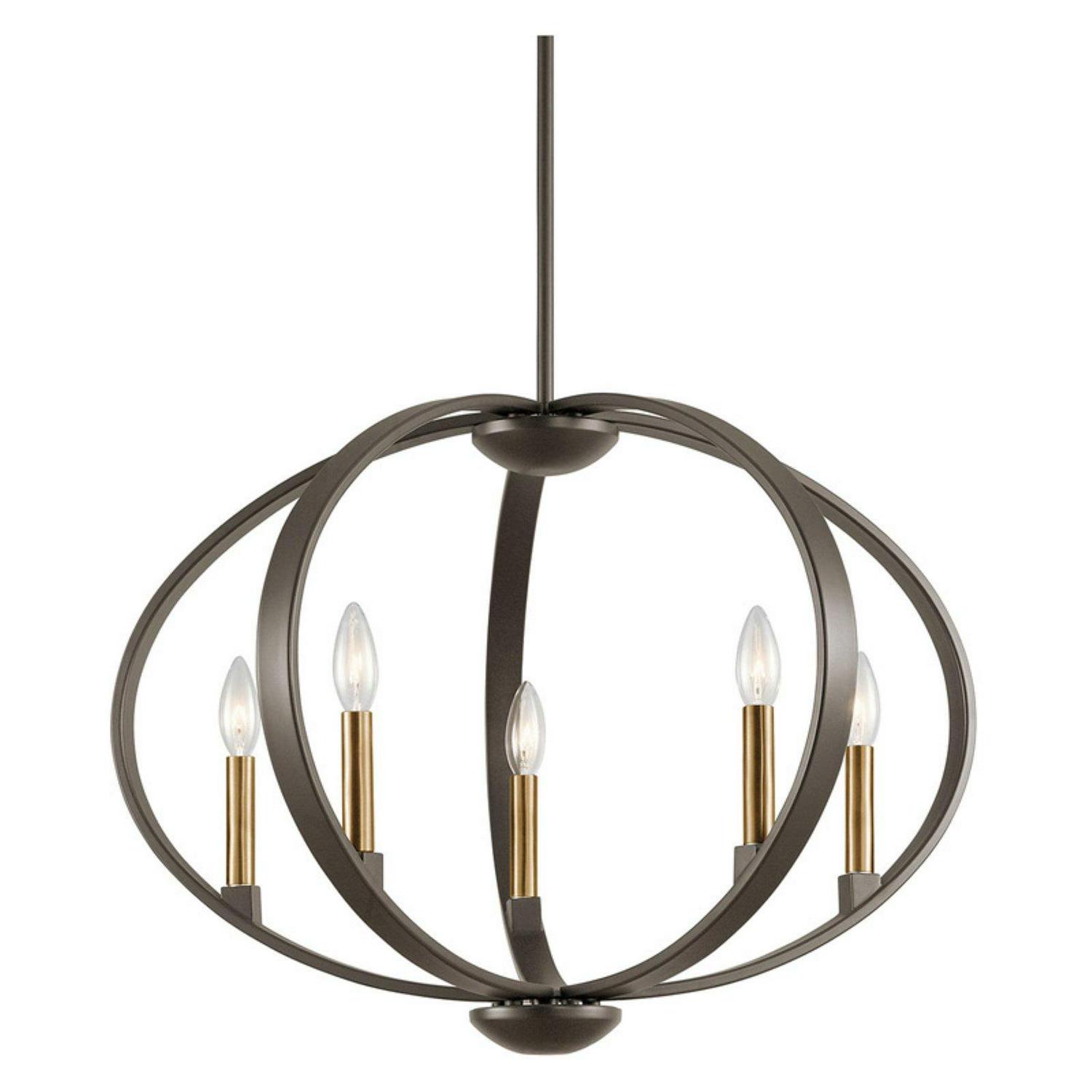 Kichler Lighting-43871OZ-Collection: Elata, Material: Steel, Finish Color: Olde Bronze, Width: 27″, Height: 19.25″, Chain Length: 36″, Lamping Type: Incandescent, Number Of Bulbs: 5, Wattage: 60 Watts, Dimmable: No, Moisture Rating: Dry Rated, Desc: Elata features an orbital look with this 5-light chandelier. This fixture enhances any transitional, contemporary or even soft traditional rooms with the use of a beautiful Classic Pewter finish with Natural Brass accents. To finish off the look, Elata utilizes candelabra bulbs nestled along the curves and atop cubes. Chain Length: 36.00. ,-Elata – 5 light Round Chandelier – with Soft Contemporary inspirations – 19.25 inches tall by 27 inches wide-Olde Bronze Finish -Traditional Installation