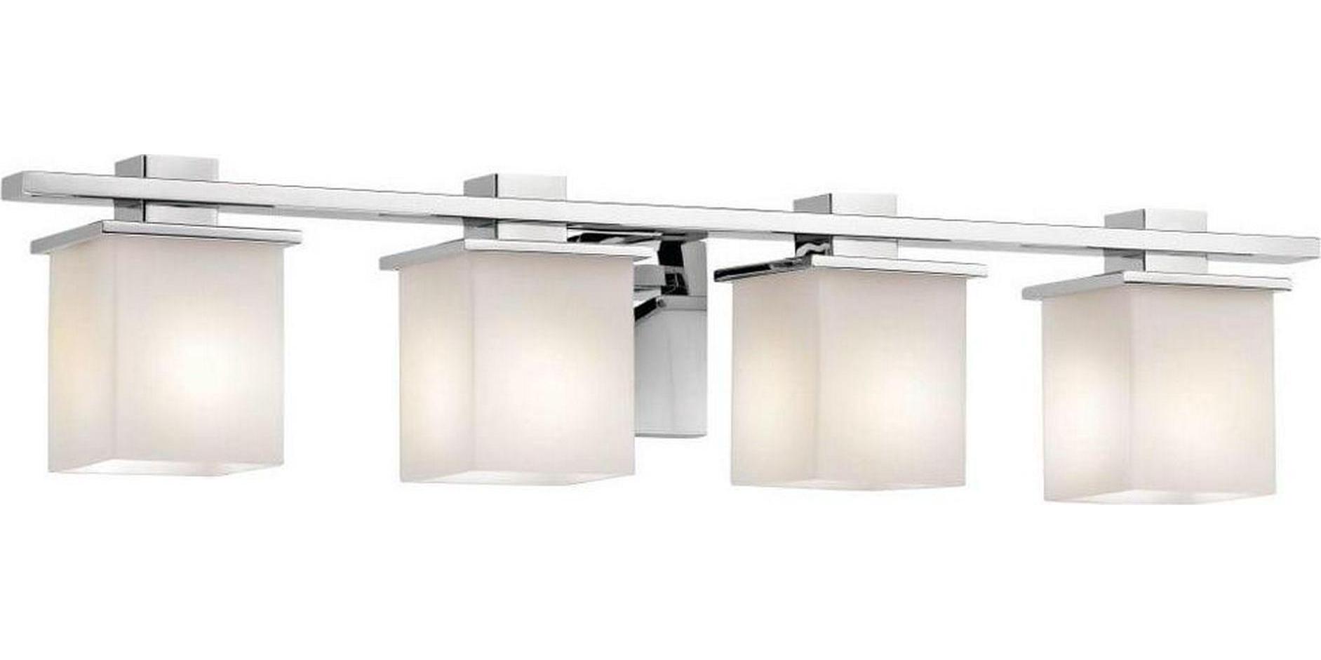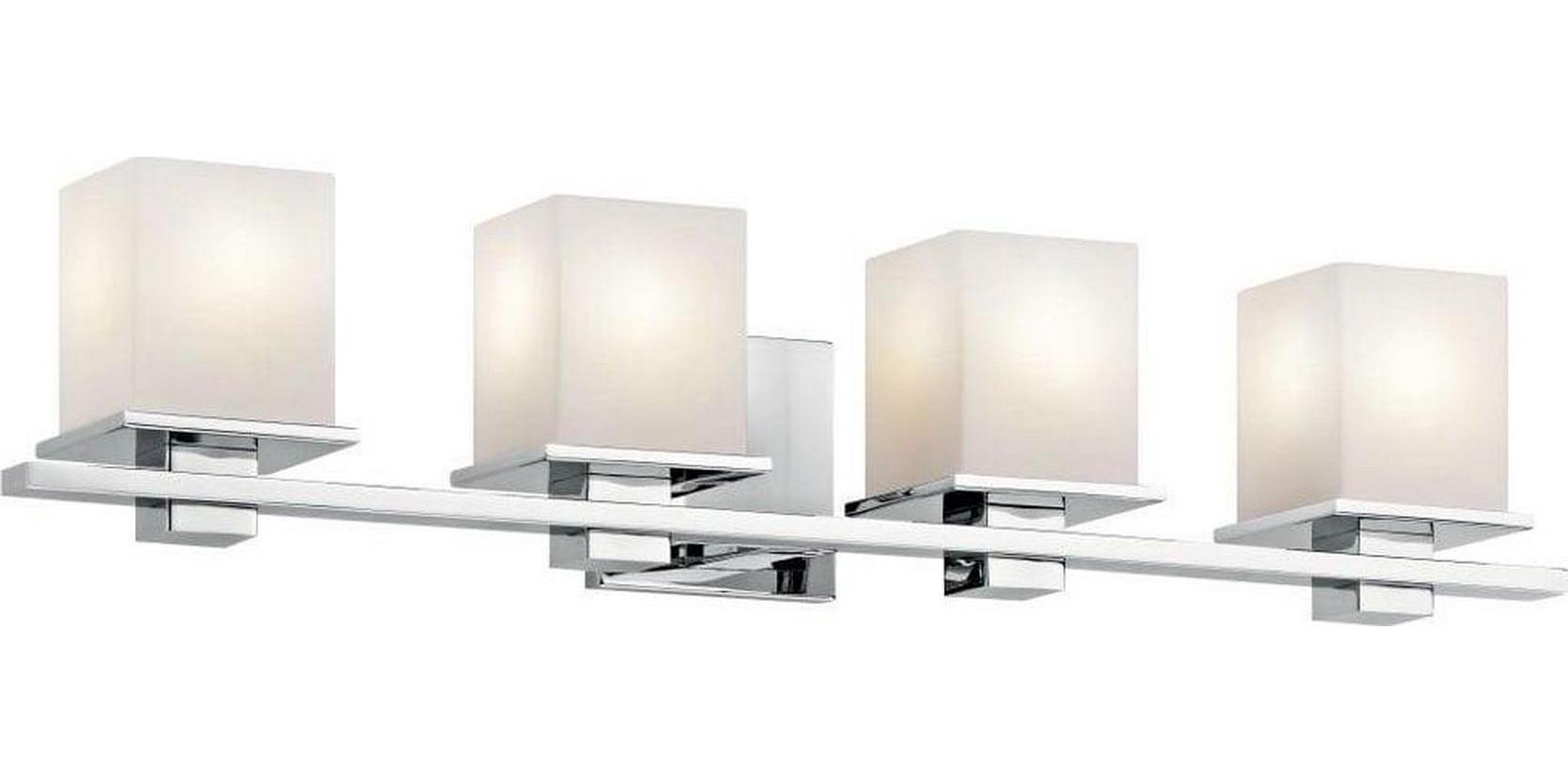 Kichler Lighting-45152CH-Collection: Tully, Material: Steel, Finish Color: Chrome, Width: 32″, Height: 6.5″, Depth: 6.75″, Height From Outlet Box: 2.5″, Backplate Width: 5″, Backplate Length: 5″, Lamping Type: Incandescent, Number Of Bulbs: 4, Wattage: 100 Watts, Dimmable: No, Moisture Rating: Damp Rated, Desc: The Tully(TM) 32in. 4 light vanity light features a contemporary look that showcases an angular geometric design, Antique Pewter finish and satin etched cased opal glass. The Tully(TM) vanity light works in several aesthetic environments, including traditional, soft contemporary and modern. Mounting Direction: Up or Down / Back Plate Height: 5.00 / Back Plate Width: 5.00. ,-Tully – 4 Light Transitional Bath Vanity Approved for Damp Locations – with Soft Contemporary inspirations – 6.5 inches tall by 32 inches wide-Chrome Finish