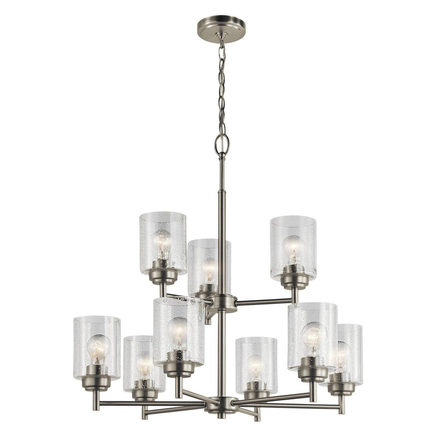 Your lights don t have to be ornamental to make a big impact. That s what the Kichler Winslow chandelier proves. Although simple by design, the Winslow s clear seedy glass diffusers pair beautifully with the linear arms to bring light and dimension to your space. With two tiers of lights, the Winslow chandelier commands attention, and thanks to its sleek and simple design, it fits in well with many different decor styles.