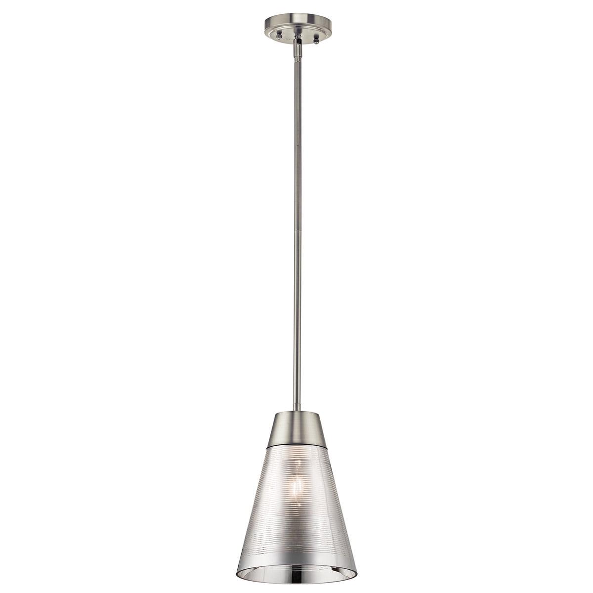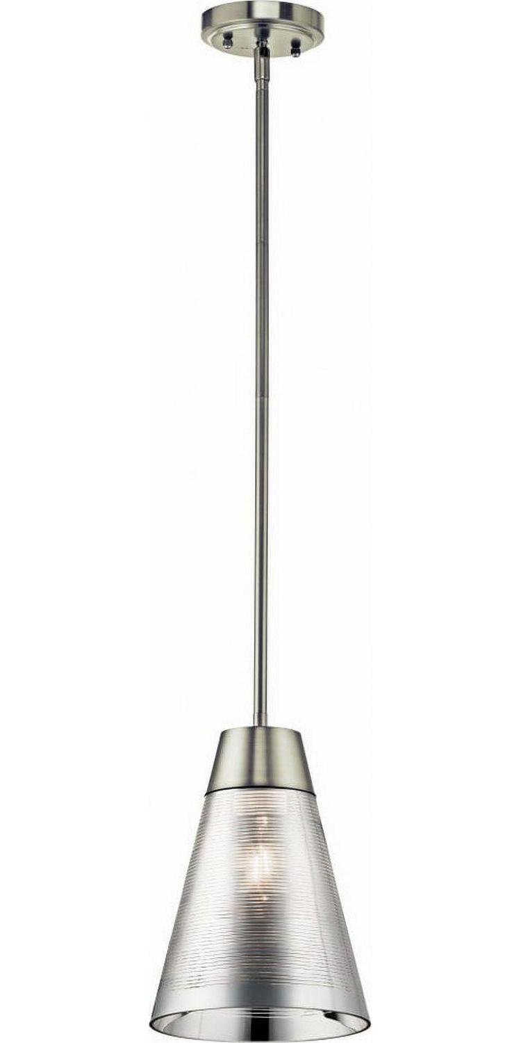 Kichler Lighting-43792NI-Collection: Rowland, Material: Steel, Finish Color: Brushed Nickel, Width: 8″, Height: 11.5″, Chain Length: 36″, Lamping Type: Incandescent, Number Of Bulbs: 1, Wattage: 100 Watts, Dimmable: No, Moisture Rating: Dry Rated, Desc: Rowland Creates A Contemporary Style That Evokes Motion And Form. The Rowland 1 Light Mini Pendant Is Finished In A Brushed Nickel Which Gives The Pendant A Slight Industrial Look. Chain Length: 36.00. ,-Rowland – 1 Light Mini Pendant – 8 Inches Wide