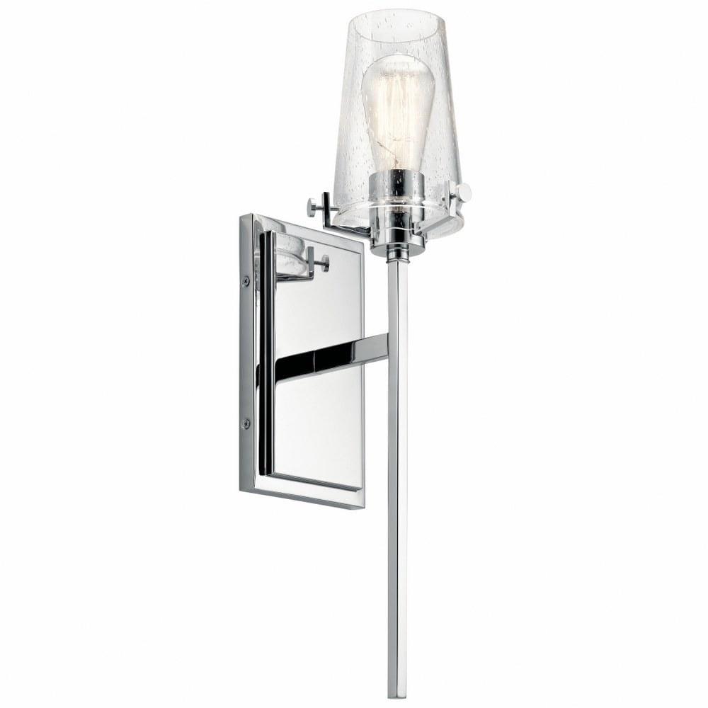 Kichler Lighting-45295CH-Collection: Alton, Material: Steel, Finish Color: Chrome, Width: 5″, Height: 22″, Depth: 7.5″, Height From Outlet Box: 10.25″, Backplate Width: 5″, Backplate Length: 9″, Lamping Type: Incandescent, Number Of Bulbs: 1, Wattage: 100 Watts, Dimmable: No, Moisture Rating: Damp Rated, Desc: This Alton 1 Light Wall Sconce In Chrome Combines Industrial-Era Detailing And Soft Modern Style. This Tall Sconce Makes A Design Statement While It’S In.Nuts & Boltin. Hardware Accents Create A Look That Works In Both Traditional Or Modern Baths. Mounting Direction: Up Or Down / Back Plate Height: 9.00 / Back Plate Width: 5.00. ,-Alton – Contemporary 1 Light Wall Sconce – With Vintage Industrial Inspirations – 5 Inches Wide