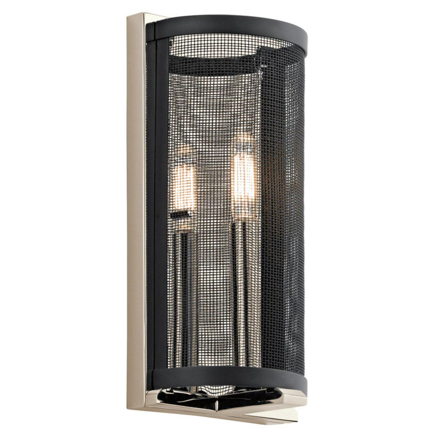 Add a touch of modern sleekness to your hallway with this Kichler Titus 43716PN Wall Sconce. A black mesh screen surrounds a single light for an industrial feel. Requires one 60-watt bulb, not included.