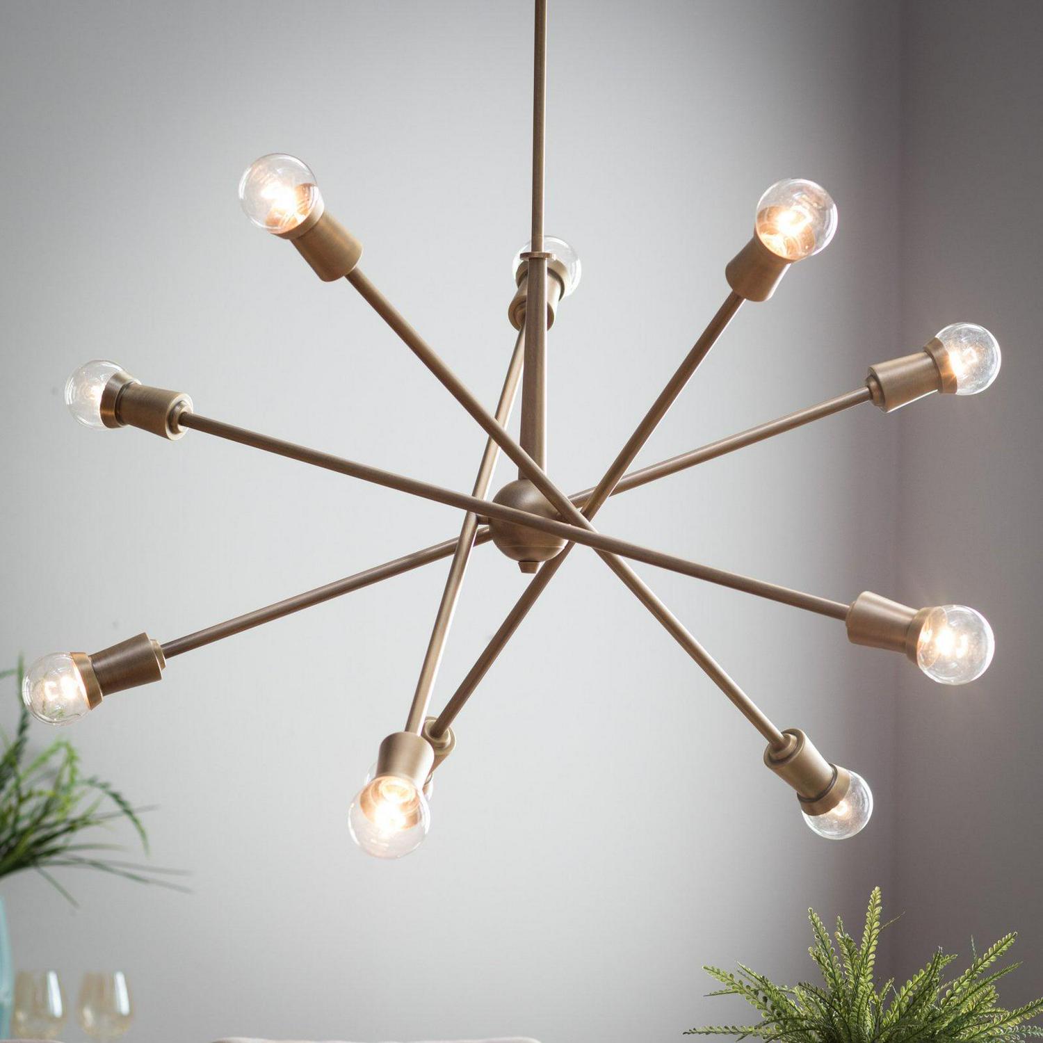 – Mid-Century Modern Sputnik-style metal chandelier from the Armstrong collection by Kichler.