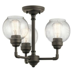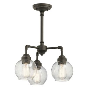 Kichler Lighting-43992OZ-Collection: Niles, Material: Steel, Finish Color: Olde Bronze, Width: 16″, Height: 14.25″, Chain Length: 36″, Lamping Type: Incandescent, Number Of Bulbs: 3, Wattage: 100 Watts, Dimmable: No, Moisture Rating: Dry Rated, Desc: This Niles’ Antique Pewter 3 light convertible mini chandelier/ semi flush ceiling light’s globe style is reminiscent of fixtures found in historic metropolitan buildings, icons of the industrial era. Niles modernizes the look with clean lines for a look that works in any home. Mounting Direction: Up or Down / Chain Length: 36.00. ,-Niles – 3 light Convertible Chandelier – with Vintage Industrial inspirations – 14.25 inches tall by 16 inches wide-Olde Bronze Finish -Traditional Installation